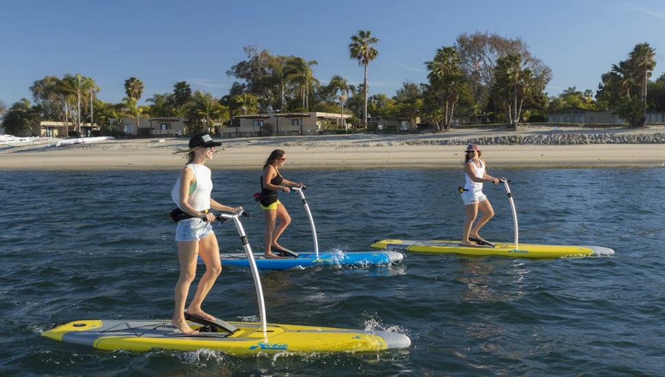 Het gaat om een variant tussen suppen en steps. Met de Hobie Mirage Eclipse beweeg je je board niet voort met een peddel, maar door trapbewegingen te maken. Vernuftige bladen onder het board zorgen voor een voorwaartse beweging.