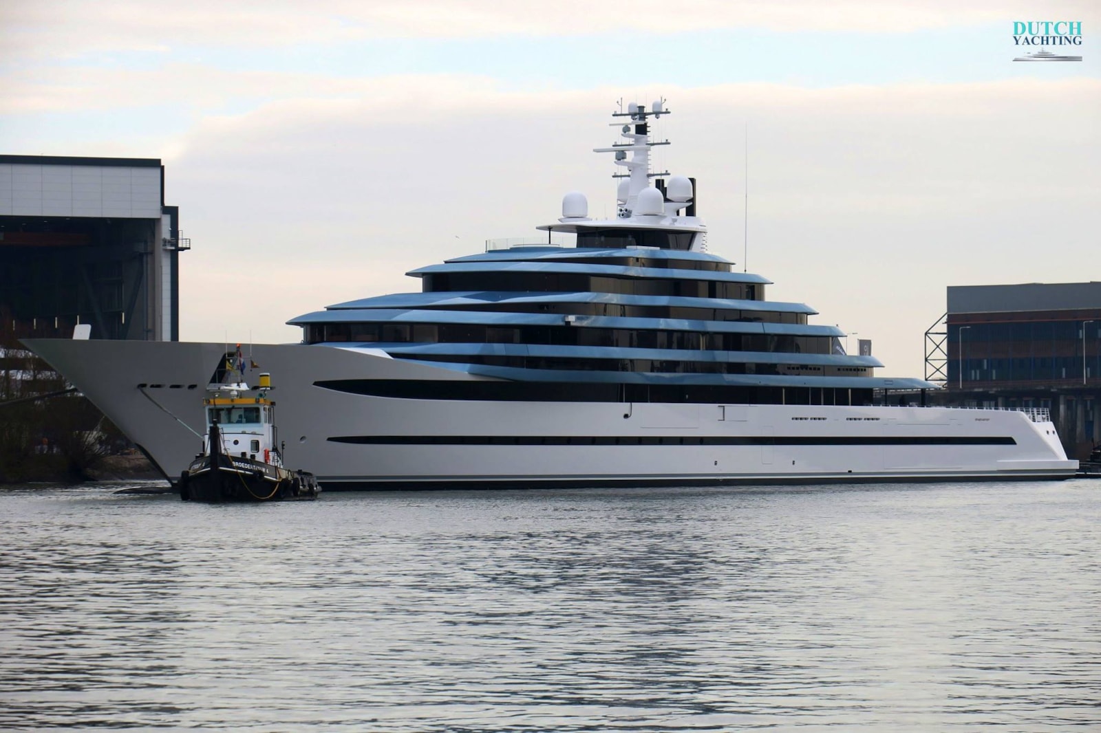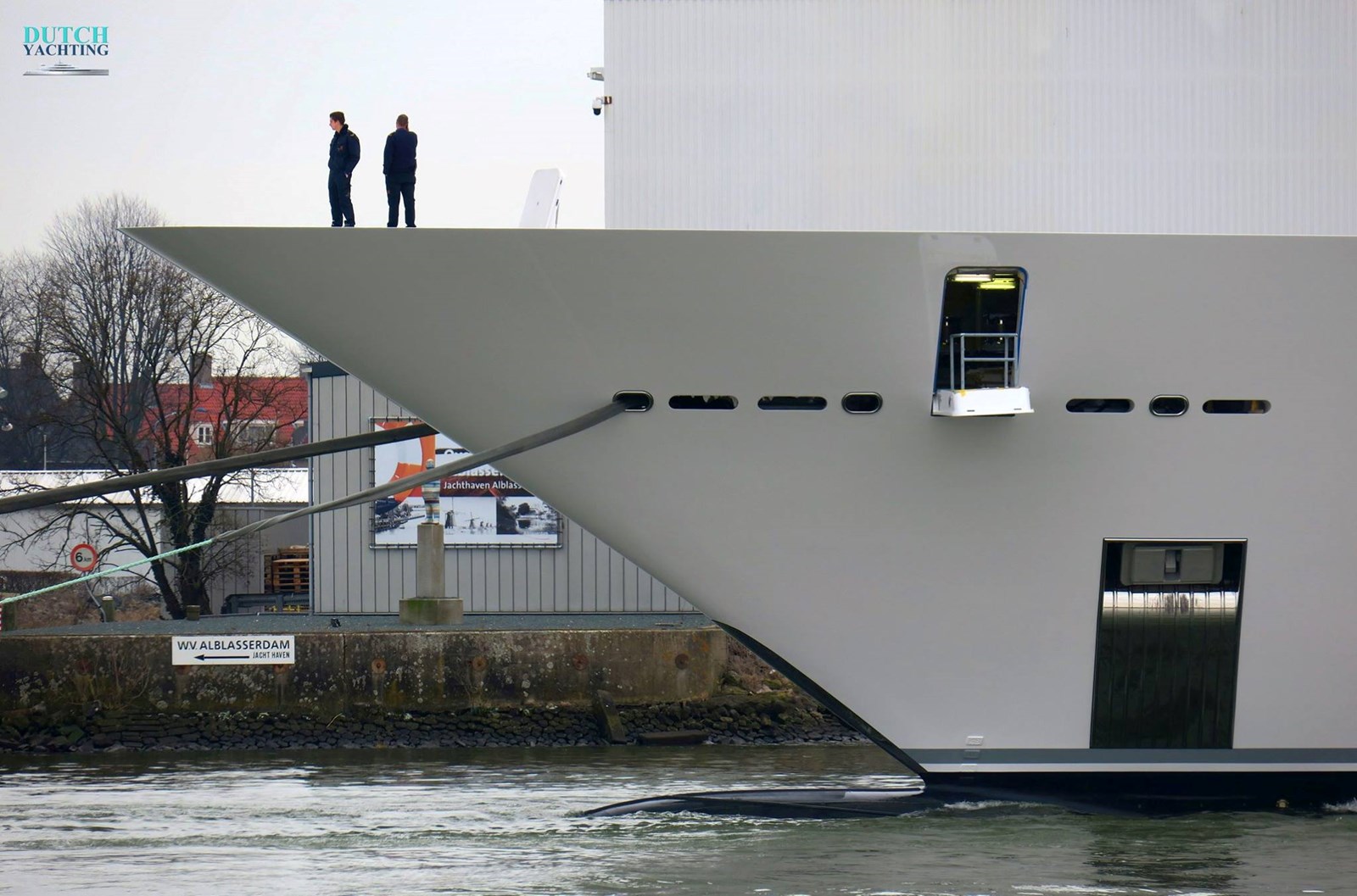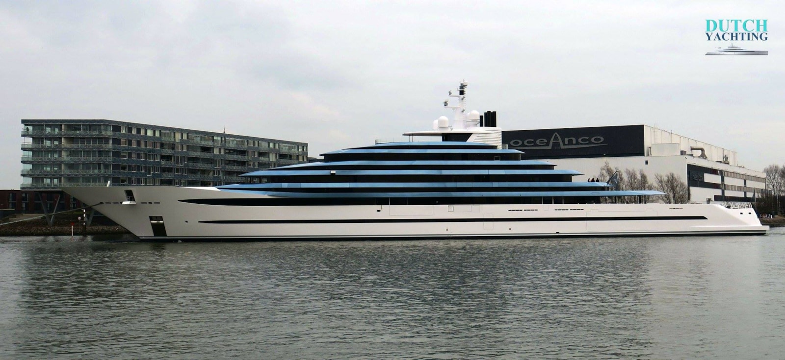 ALBLASSERDAM- Als bouwer van superjachten behoort Nederland gelukkig nog steeds tot de toonaangevende landen. Vorige week konden we beelden laten zien van de Y712, het grootste zeilschip dat ooit in Nederland is gebouwd. Bij dezelfde werf, namelijk Oceanco, zag maandag de Y714, het eerste levenslicht. Het motorjacht verbreekt met haar 110 meter lengte opnieuw een record. Via Dutch Yachting kunnen we alleen de beelden laten zien van het naar buiten varen met het superjacht. Helaas zit even binnenkijken met de camera er niet in. In een persbericht van Oceanco valt te lezen dat het interieur door Sam Sorgiovanni Designs is verzorgd en dat Igor Lobanov de buitenkant voor zijn rekening nam. Naast een heliplatform is het jacht onder meer uitgerust met een groot zwembad met ingebouwd aquarium en flinke beachclub. In de 15 luxe hutten kunnen liefst 30 gasten worden ondergebracht. Toch hoeft de eigenaar niet te vrezen voor zijn privacy; hij beschikt over een heel privé dek. Oceanco nam twee jaar geleden in Alblasserdam een nieuwe loods in gebruik om jachten van deze omvang te kunnen bouwen.