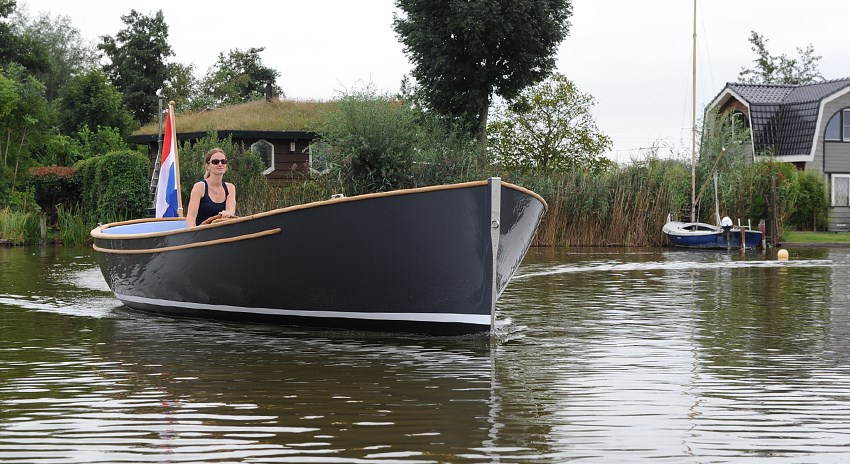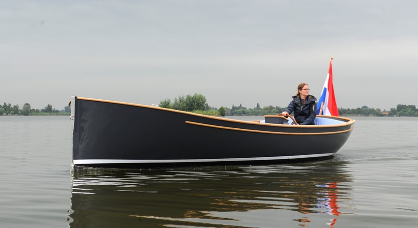Iets wat bij elektrisch varen essentieel is, is efficiency! Dat is bij het ontwerp van deze sloep dan ook goed gelukt. Anders dan bij sommige andere elektroboten, mag je in deze elegante 9-persoonssloep met haar teakhouten interieur en vloeiende lijnen dan ook echt gezien worden!