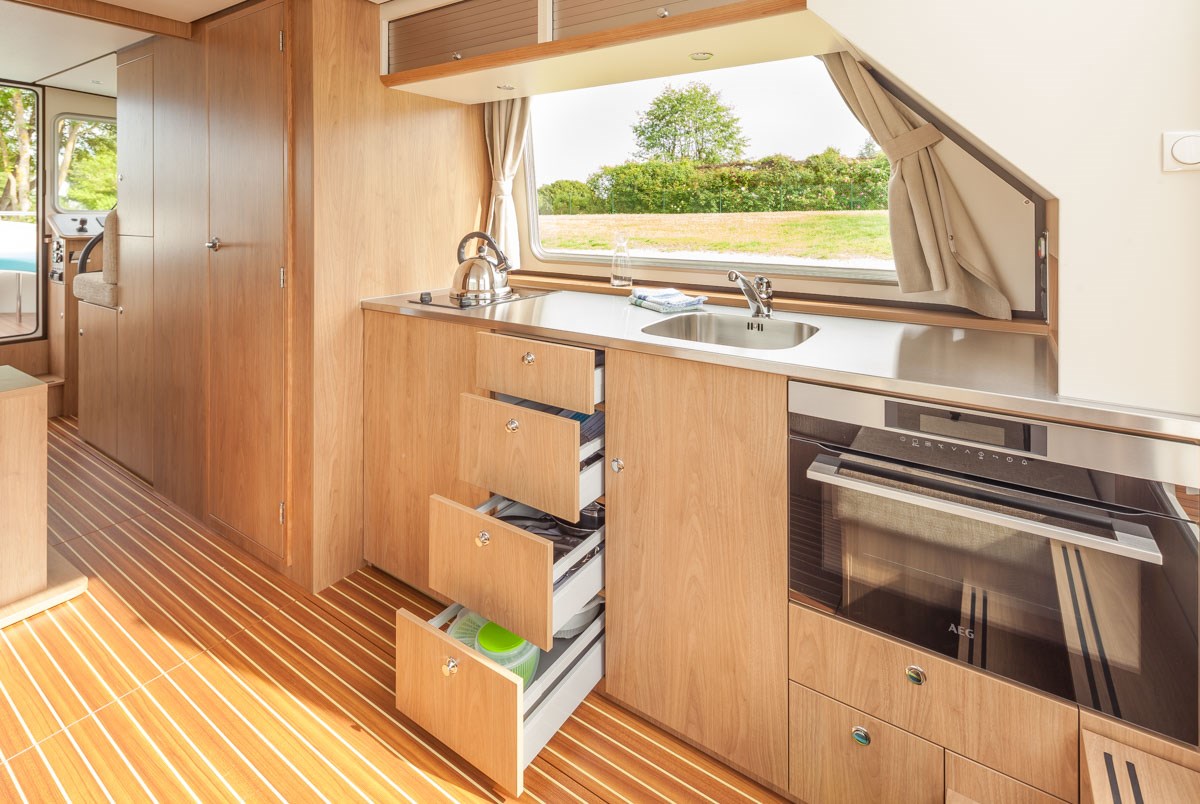 Tijdens het varen levert de generator 240 Volt voor elektrisch koken en voor de elektrische oven. Wanneer u stilligt en de hoofdmotor niet draait, levert de generator voldoende stroom voor alle hotelcomfortfuncties.