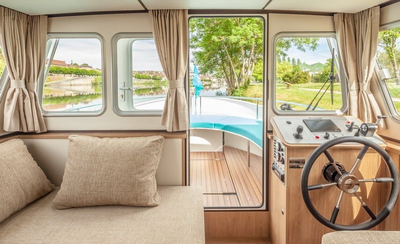 Zowel de voortstuwingsmotor als de boeg- en hekschroefmotoren worden bediend door één enkele, logische joystick, die het vermogen van de drie motoren op basis van de gewenste vaarrichting en manoeuvre automatisch, proportioneel aanstuurt. De boot maakt exact die bewegingen die u met uw hand maakt met de joystick, of dit nu recht vooruit is, recht achteruit, dwars of schuin naar voren of dwars of schuin naar achteren. Een onervaren schipper kan gemakkelijk varen, aanleggen en sluismanoeuvres uitvoeren met behulp van de ‘slimme’ joystick. De boot is uiteraard ook handmatig te besturen door middel van het stuurwiel, de elektrische handle voor vooruit/achteruit/gas en 2 joysticks voor het bedienen van boeg- en hekschroef.