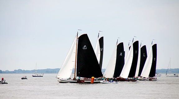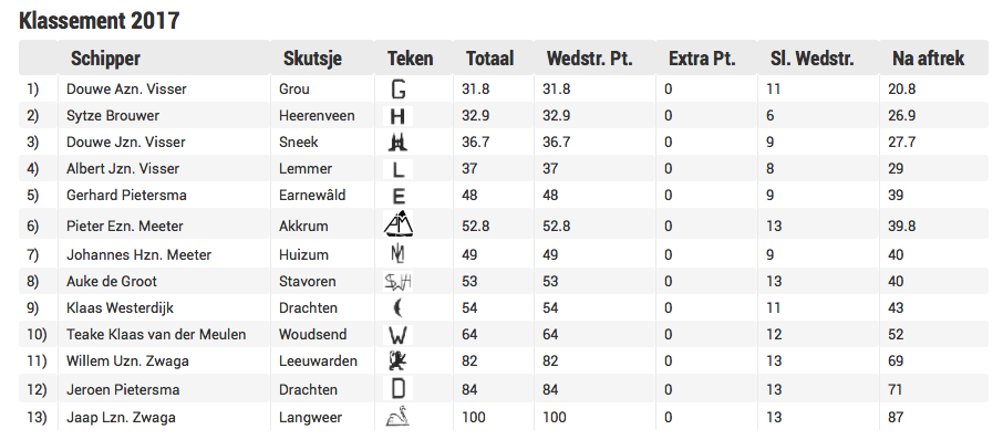 LEMMER- Pieter Meeter en zijn bemanning op het Akkrumer skûtsje hebben de eerste wedstrijd van de SKS bij Lemmer voor spek en bonen meegedaan. Al bij de ronding van de eerste boei na de start kwam Meeter over stuurboord naar de boei op het moment dat Auke de Groot (Stavoren) en andere deelnemers over de voorrangsboeg (zie foto) naderden. In plaats van zekerheid voor alles en dus achter de concurrentie langs te gaan, verkoos Meeter zijn schip tussen de boei en het Staverse schip te prikken en dat kwam hem op een rode vlag van De Groot te staan. Na afloop van de strijd in de baai van Lemmer maakte de jury korte metten met de winnaar van deze middag: Meeter werd gediskwalificeerd. Zijn eerste plaats werd nu een laatste. De hoogste trede van het ereschavot was vervolgens voor de debutant Sytze Brouwer met de Gerben van Manen van Heerenveen. Achter hem werd de strijd tussen Lemmer, Grou en Sneek beslist in het voordeel klassementsleider Douwe Visser van Grou. Hij hield zijn neven Albert en Douwe Visser van respectievelijk het Lemster skûtsje en de Sneker Pan achter zich. Grou bouwde in het klassement daardoor zijn voorsprong op Sytze Brouwer uit.