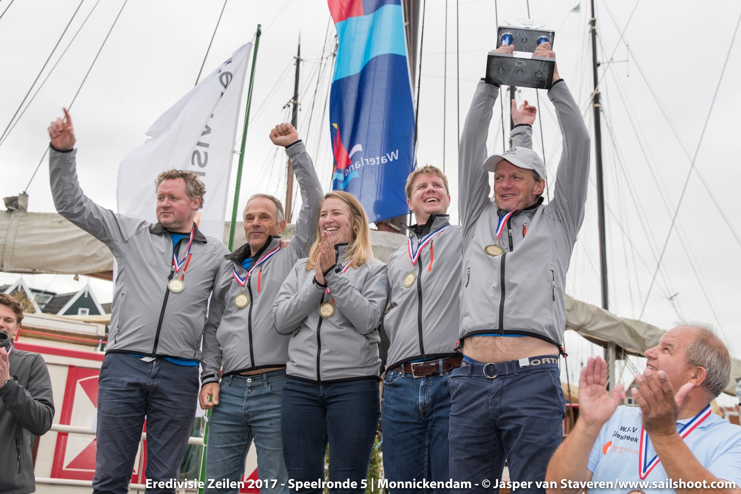 Almere Centraal was er een hoop aangelegen hun titel te prolongeren. Team captain John den Engelsman vertelt: “Onze ambitie was de landstitel van 2016 te prolongeren, en dat is prima gelukt. Ook de laatste speelronde in Monnickendam hadden we graag het podium willen halen, maar dat is helaas net niet gelukt. Begin van dit seizoen hebben wij 4 nieuwe leden aan ons team toegevoegd. Allemaal ervaren wedstrijdzeilers, maar wel iedere speelronde weer een uitdaging om het juiste team op te stellen. Ook dit heeft bijzonder goed uitgepakt. Tot dit weekend wisten we al 3 speelrondes te winnen, hoewel de onderlinge marges aanzienlijk kleiner zijn ten opzichte van 2016. Waar de marges helemaal klein waren was tijdens de Sailing Champions League 2017, de Europese variant van het Eredivisie Zeilen waar de 64 beste clubs van Europa meevaren. Tijdens de finales twee weken terug in Porto Cervo (Italië) hebben we een overall 9e gezeild, maar het verschil met een podiumplaats was slechts 4 punten. Ambitie in 2018 is een podiumplaats tijdens deze Europese finale pakken!”