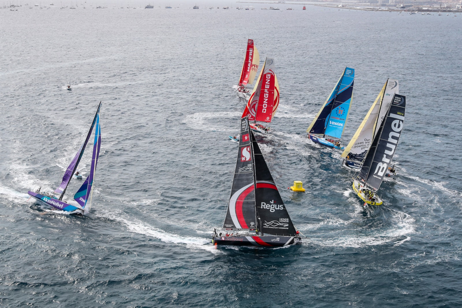 Omringd door honderden toeschouwerboten en met duizenden fans op de kades begonnen de zeven Volvo Ocean 65’s aan de dertiende editie van de Volvo Ocean Race. Allereerst zeilden ze een baan van 8 mijl rondom de boeien voor de kust van Alicante, waarna ze 1.450 nautische mijlen richting Lissabon voor de boeg hadden.