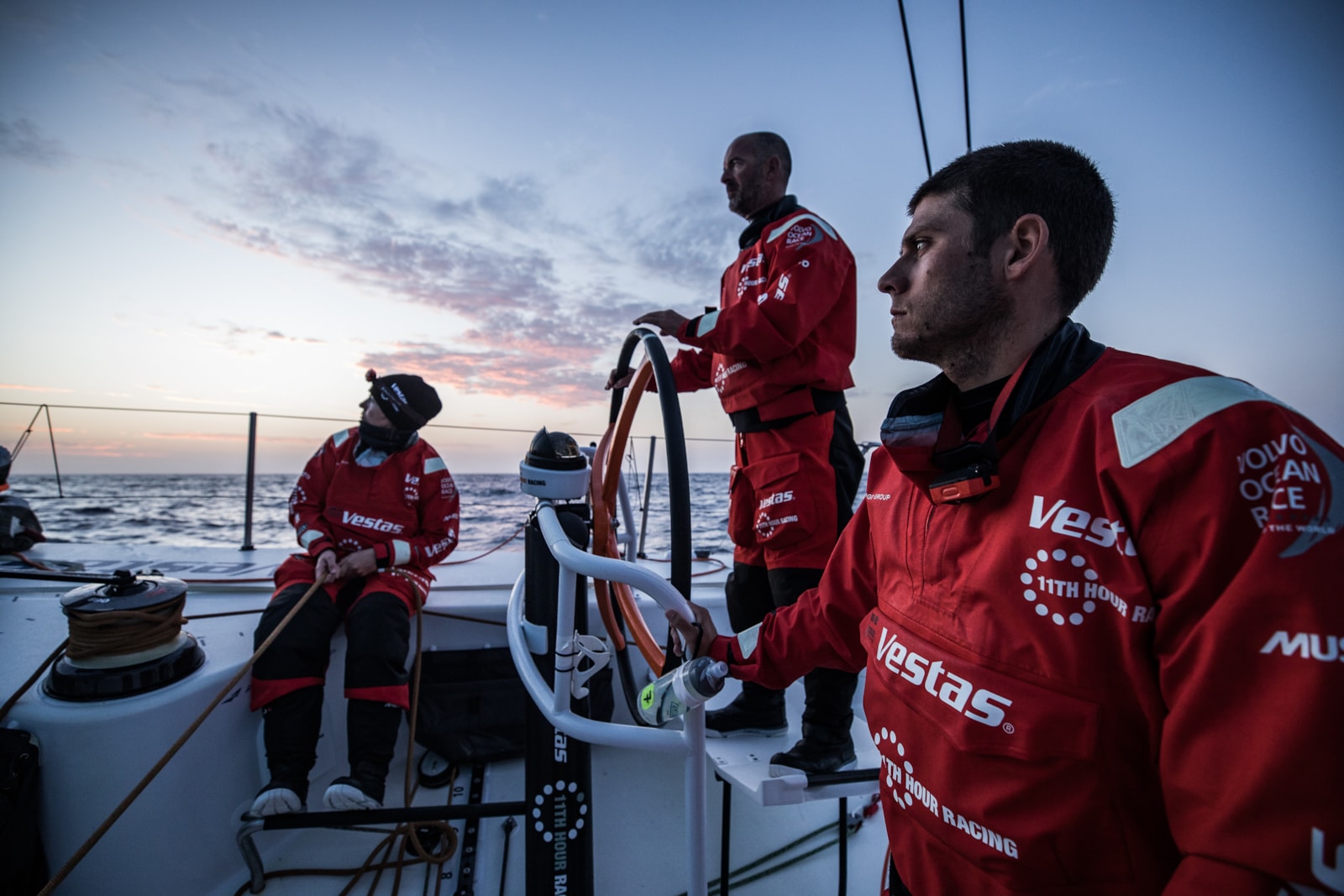 Eenmaal voorbij het waypoint van de virtuele boei was de vloot vrij om hun eigen koers richting de eindstreep uit te zetten. Vestas 11th Hour Racing blijft een klasse apart deze eerste etappe van de Volvo Ocean Race 2017-18. Zij hebben momenteel een voorsprong van bijna 27 nautische mijlen (nm) op MAPFRE. Team AkzoNobel zit daar weer bijna 25 nm achter.