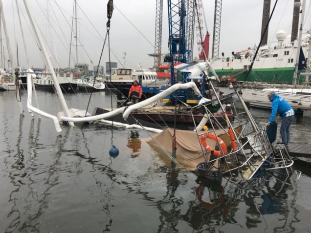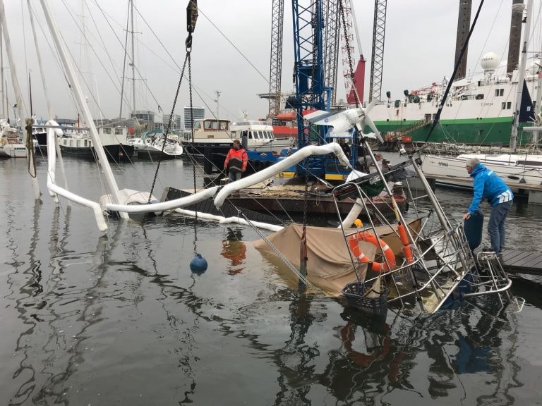 AMSTERDAM- Bedoeling was om over twee jaar op wereldreis te gaan. Maar dit plan hebben Yvette en Sander Droog op de lange baan moeten schuiven. In oktober j.l. zonk hun vorig jaar aangeschafte zeiljacht naar de bodem van de Amsterdam Marina.