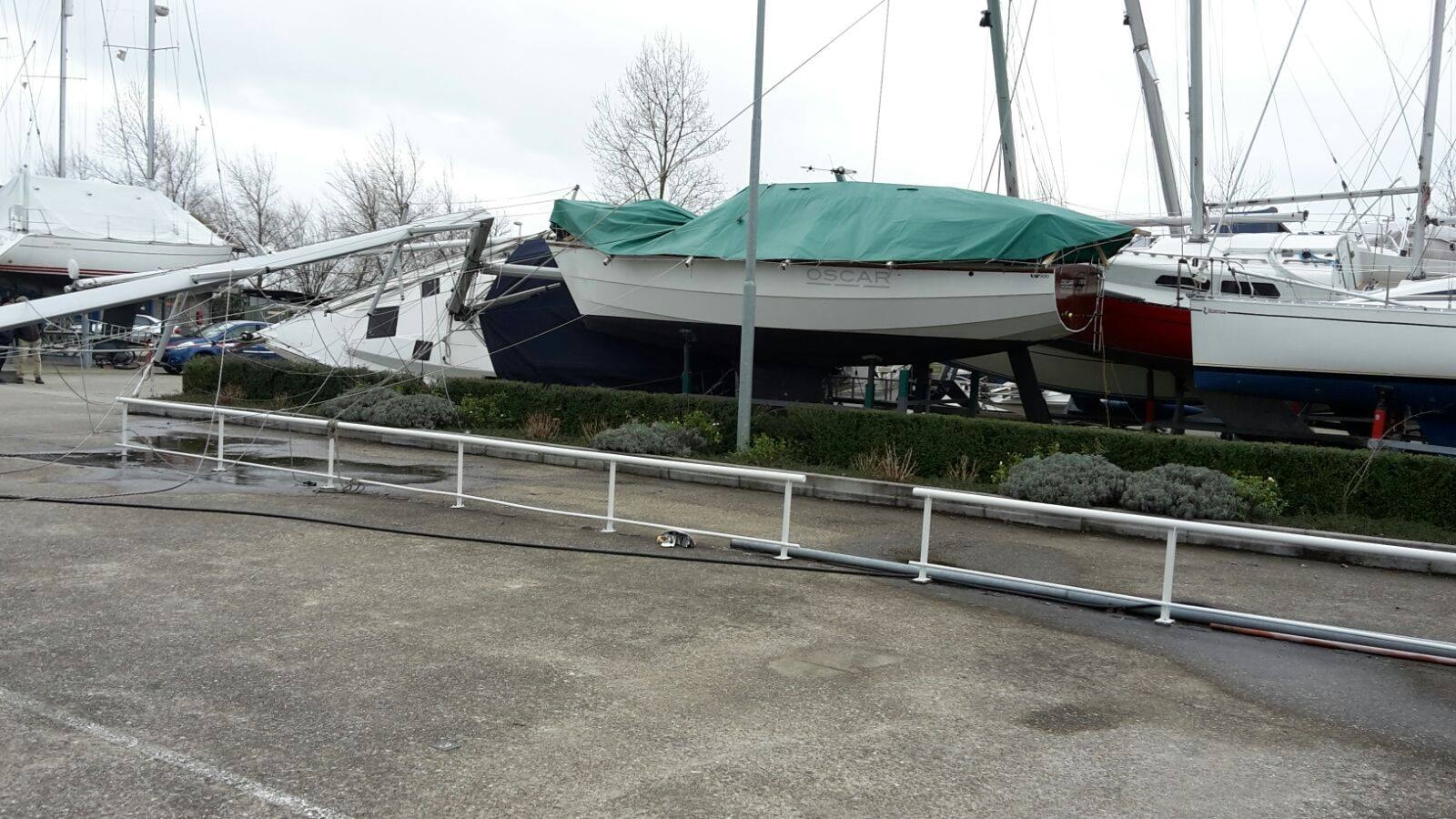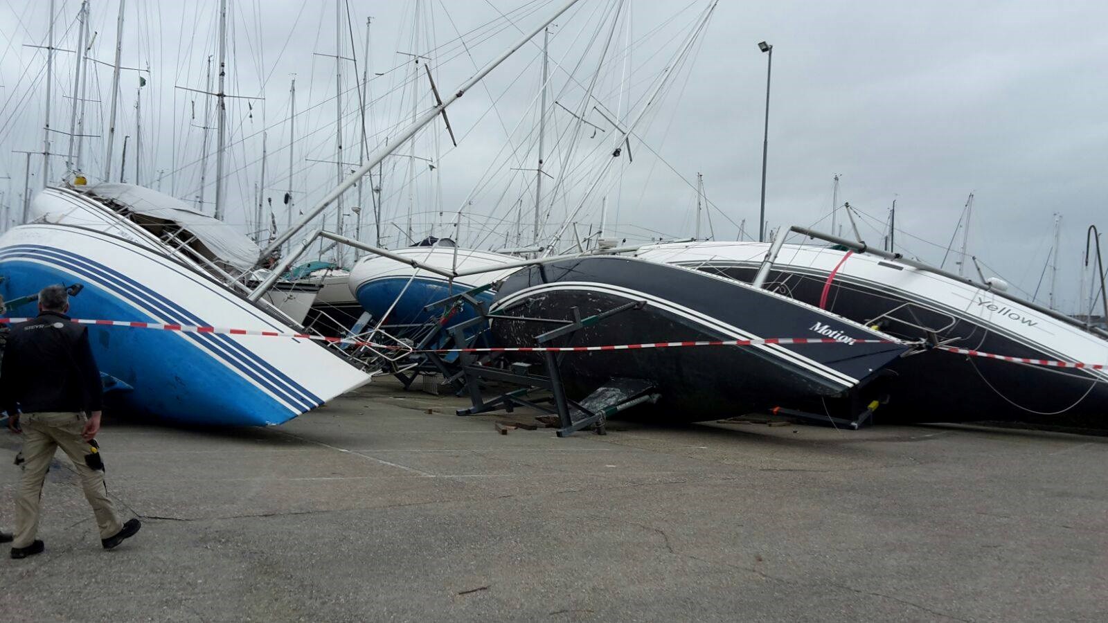 Op de jachthaven van WSV Hellevoetsluis zijn meerdere jachten die op de wal in de winterstalling stonden, omgewaaid. In de haven van Urk is de voormalige replica van de Ark van Noach op drift geraakt en richt schade aan. Diverse jachten in het water zijn beschadigd.