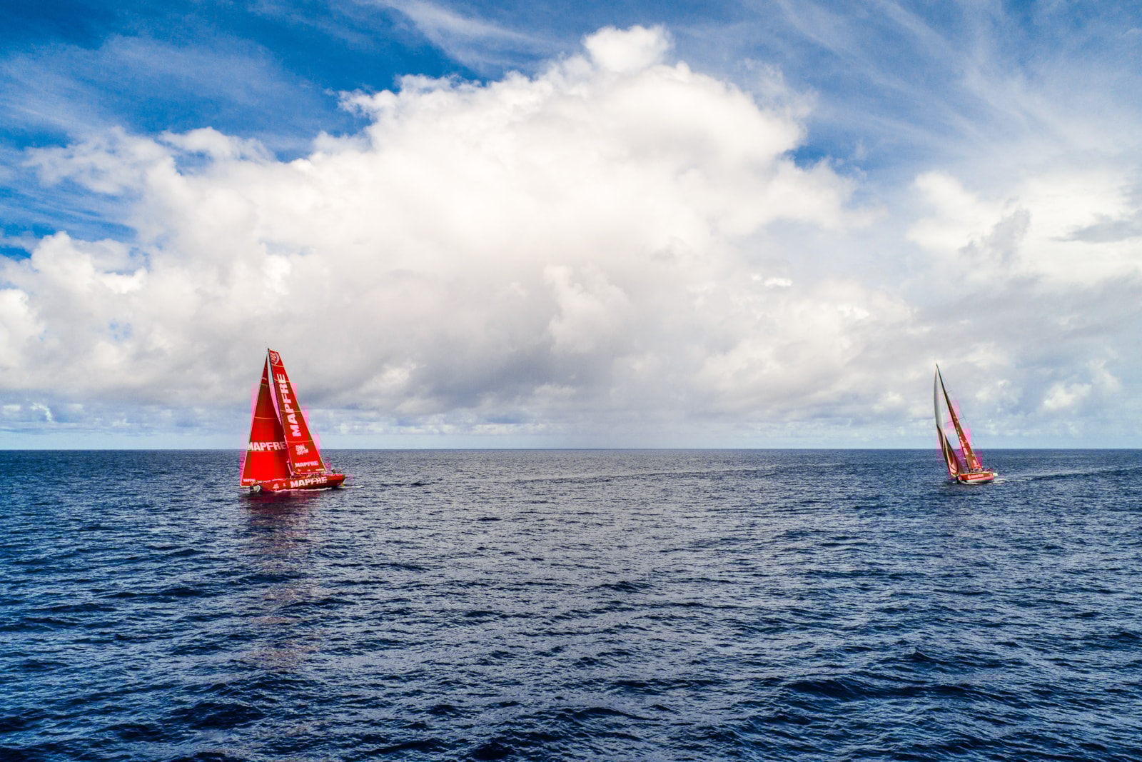 ”Je zou denken dat we met een elastiek aan elkaar vast zitten”, schreef de Nederlandse Dongfeng-zeilster Carolijn Brouwer bij een foto waarop MAPFRE op nagenoeg ‘high-five’ afstand zeilt.