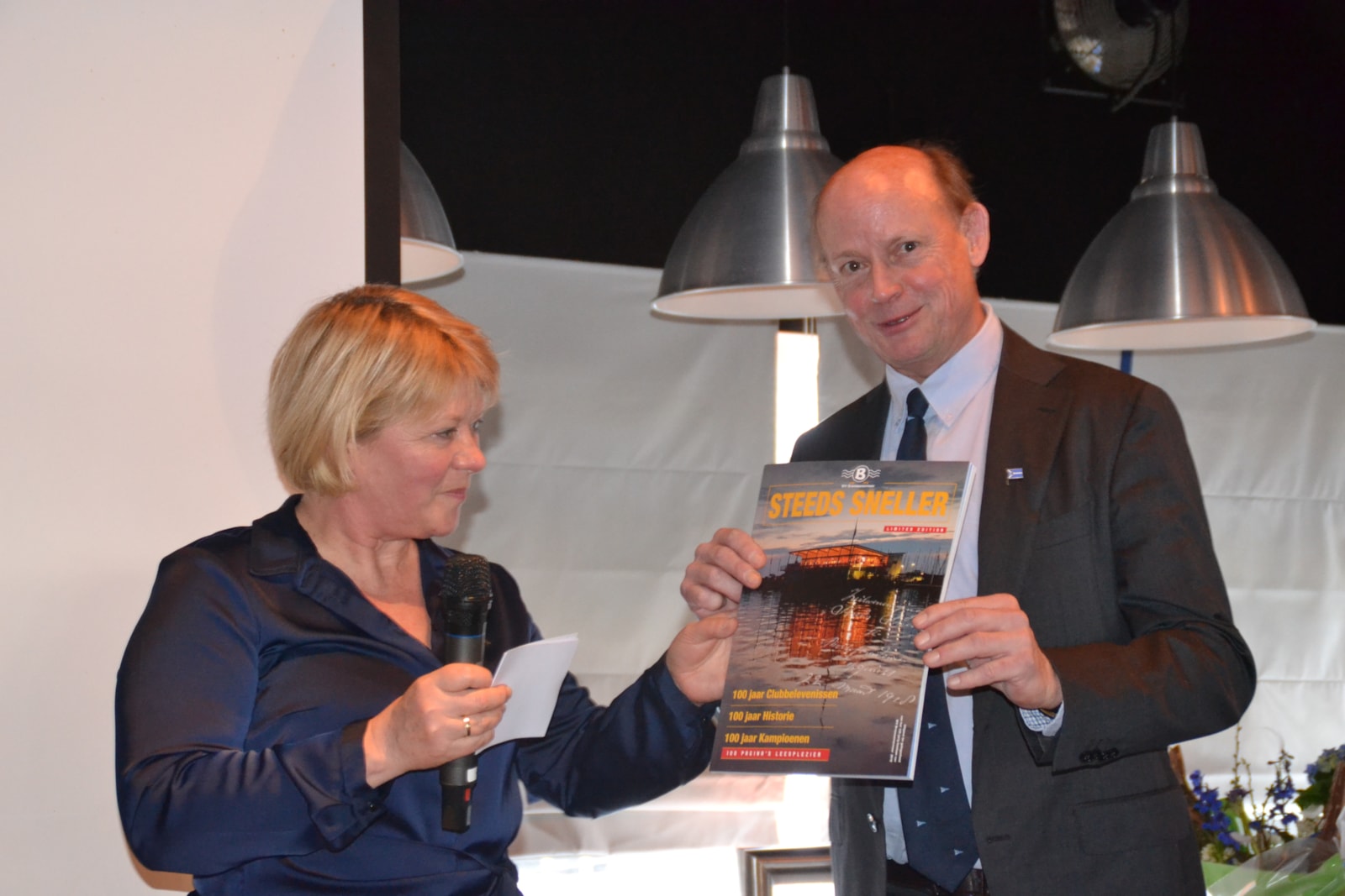 Vervolgens overhandigde Marijke Hasselman, voorzitter van de lustrumcommissie, het eerste exemplaar van de prachtige ‘glossy’ die speciaal ten behoeve van het lustrumjaar is samengesteld. Een prachtige uitgave bestaande uit maar liefst 100 pagina’s over het heden en verleden van de vereniging met prachtige foto’s en interviews.