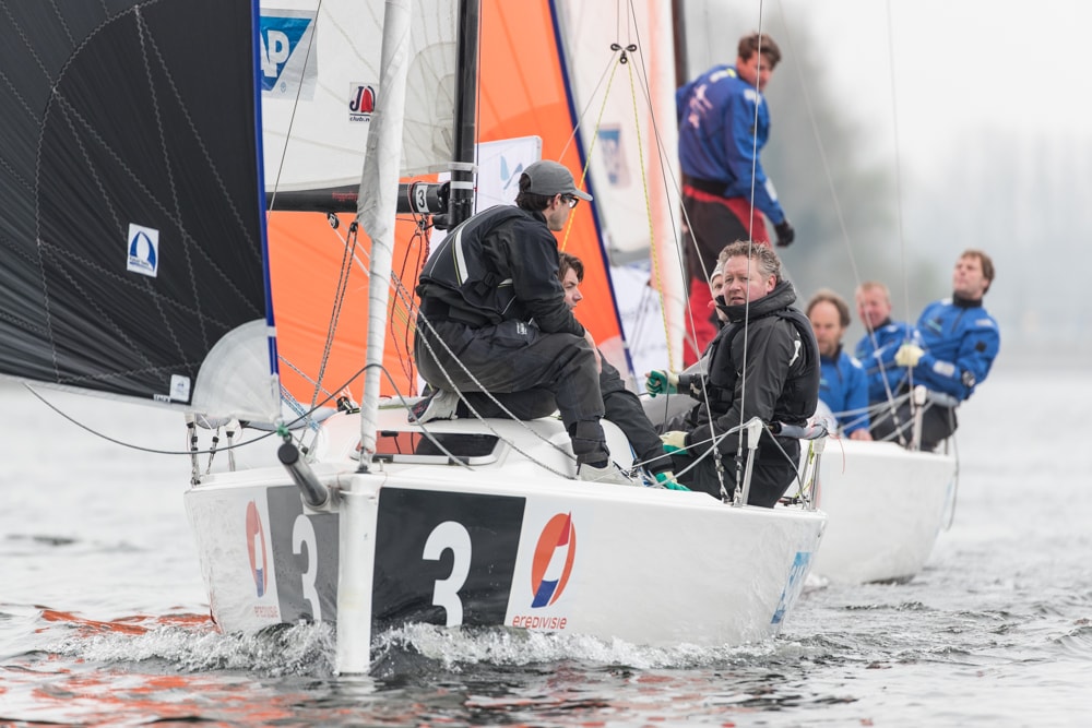 ALMERE- Almere Centraal heeft de eerste ronde van de eredivisie zeilen gewonnen. Op het thuiswater werd zaterdag de basis gelegd voor de overwinning. Zondag werd een race gezeild. Nadat vervolgens de wind verdween, werden de boten naar de kant gehaald. De enige race van zondag telde hierdoor niet mee voor het klassement. De tussenstand van zaterdag werd de einduitslag van de eerste speelronde.