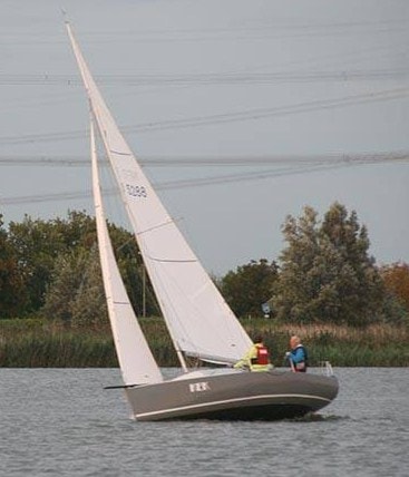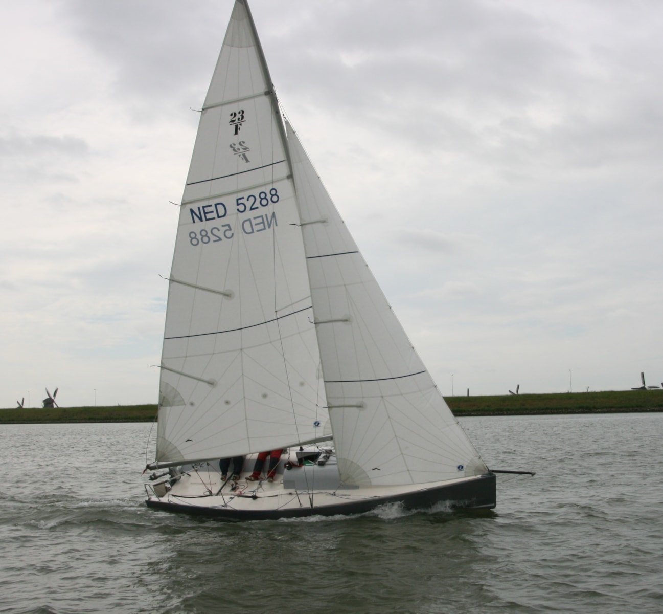 - Zeilvoering: grootzeil 18,7 m2, fok 9,5 m2