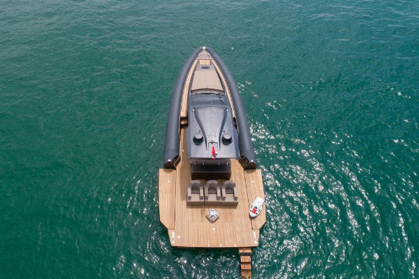 Het innovatieve jacht wordt gekenmerkt door twee speciale vleugelvormige stijlen die van het kajuitdak via de stuurstand doorlopen naar het dak en de geïntegreerde luchtinlaat in het dak. Spectaculair is het achterdek; de kuipwanden zijn neerklapbaar waardoor het achterschip transformeert tot een beach-club van indrukwekkende afmetingen. De bouwers spelen hiermee in op de grotere behoefte het water echt te beleven.