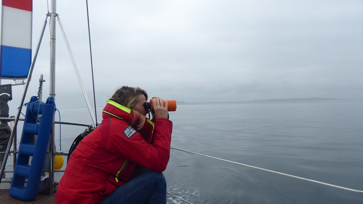 En wat kan ik hier iedere dag weer intens van genieten. Ik ben elke dag buiten en ervaar de hele dag door het kind in mij. Vroeger speelde ik ook elke dag buiten, op zoek naar avontuur en vol verwondering voor de natuur. Hoe gaaf is het dan om achterin de haven een betonnen trappetje te ontdekken die uitkomt op een paadje langs de kliffen van de schotse hooglanden met de metersgrote velden van bloeiend roze Engels gras en paarse dopheide. En zo gaat het al 16 dagen lang. Een zeer bijzonder moment voor mij was op de Noordzee bij de Farne Islands, we lagen daar als enige boot in de baai voor anker en werden omgeven door honderden zeevogels: Alken, Papagaaiduikers, Dougallssternen, Jan van Genten, Aalscholvers, Stormvogeltjes, Meeuwen en Zeehonden. Echt, het is nooit saai op zee, want hoe gaaf is het als je opeens verrast wordt door een groep Witsnuitdolfijnen die gezellig een eindje met je opzwemmen. Of een papegaaiduiker die met zijn knaloranje flapvoetjes en prachtig gekleurd snaveltje een snoekduikje maakt naast de boot.