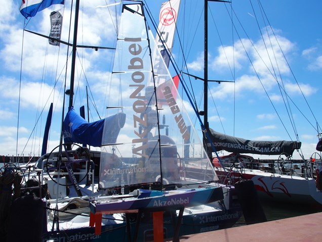 SCHEVENINGEN- Zes maanden is Rob de Vries bezig geweest met het bouwen van een miniatuur Volvo 65. Met zijn radiografische boot, die de kleuren heeft gekregen van de AkzoNobel Volvo Ocean Racer, is Rob regelmatig aan het varen. Op uitnodiging was hij bij de finish in Scheveningen en natuurlijk had hij zijn boot meegenomen.