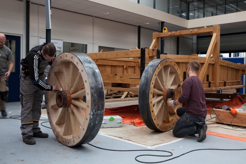 SCHEVENINGEN- In Scheveningen wordt van 12 tot 20 juli het wereldkampioenschap zeezeilen gehouden. Het WK heeft als thema innovatie. Om te laten zien dat de Hollanders al 400 jaar innoveren is op initiatief van de organiserende Jachtclub Scheveningen en het Watersportverbond een zeilwagen nagebouwd die Prins Maurits in 1602 heeft laten bouwen. Met deze zeilwagen is hij onder meer met een gemiddelde snelheid van 40 km per uur van Scheveningen naar Petten gezeild. De replica is nagebouwd als leerproject door leerlingen van ROC Mondriaan. Na het WK komt de zeilwagen bij het museum Scheveningen te staan.