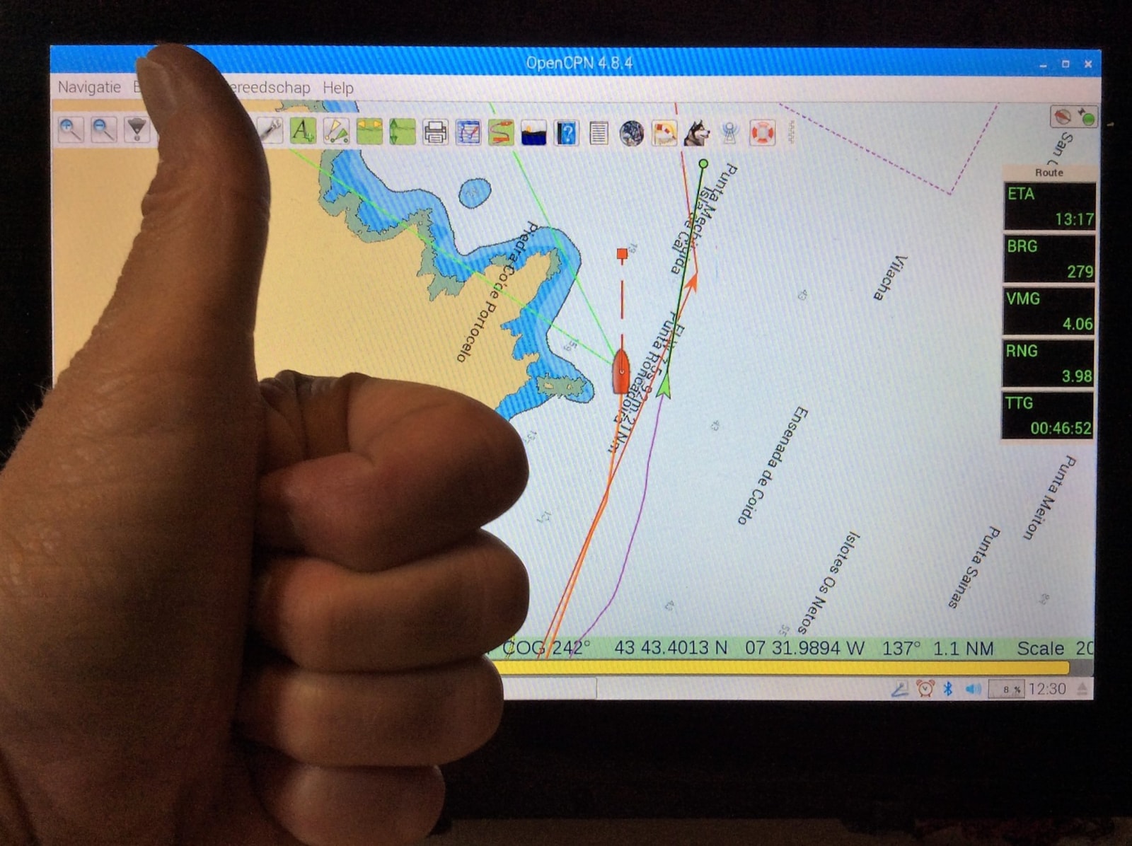 Het aankomen op een bestemming geeft ook regelmatig een gevoel van trots, ‘zo dat heeft Liesje toch maar weer mooi gefixt’. En wat heb ik nog veel te leren op zeilgebied, echt mazzel dat Ronald zo geduldig met mij is. Het moet wel enorm schakelen voor hem zijn, want wat zijn we verschillend en gelukkig ook super complementair. Van belang is dat ik niet teveel tegelijk nieuwe dingen wil aanpakken en vervolgens ook duidelijk aangeef bij mijn maatje waar mijn grenzen liggen. Zo wilde ik graag leren navigeren op Open CPN en dit heb ik nu al redelijk onder de knie. Een route uitzetten met markeringspunten, zodat we rekening houdend met het getij, tussen de rotsen en ondieptes kunnen varen lukt prima. Echt lastig vind ik het uit- en inzoomen van het beeld, waardoor ik regelmatig mij onzeker voel over de werkelijke afstand in nautical miles van onze ia ten opzichte van de wal of rotspunt. Zeker toen ik ‘s nachts in mijn eentje al zeilend de wacht hield op de golf van Biskaje en je dan een shippinglane nadert. Wat is het goede moment om over te steken? Die schepen varend zo knoerthard. Wij 11 metertjes, en zij soms wel 145 meter lang. Als ze dan met drie vrachtschepen parallel aan komen varen voel je je wel klein en nietig. Maar ook hier word ik steeds handiger in. Zo houd ik nu geen rekening meer met vissersboten, want die gaan toch hun eigen gangetje. En als ik dan na vier uur mijn wacht overdraag aan Ronald, rol ik moe en voldaan mijn bedje in.