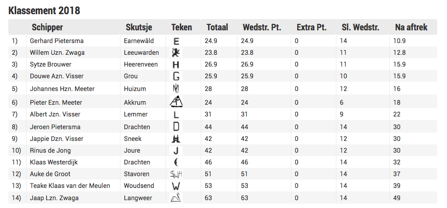 Later in de wedstrijd zagen we Gerhard Pietersma, de klassementsleider, het veld verlaten. Hij was in een bakboord-stuurboord-kwestie met Pieter Meeter verzeild geraakt. Daarbij was het Earnewâldster skûtsje de foute partij en veiligheidshalve ging Pietersma daarom naar zijn volgvloot terug. Daarmee voorkwam hij dat hij na een protest zou worden uitgesloten en veertien niet-aftrekbare strafpunten zou krijgen.