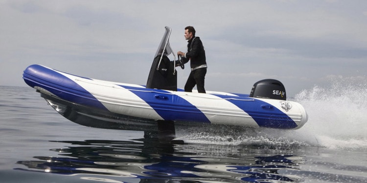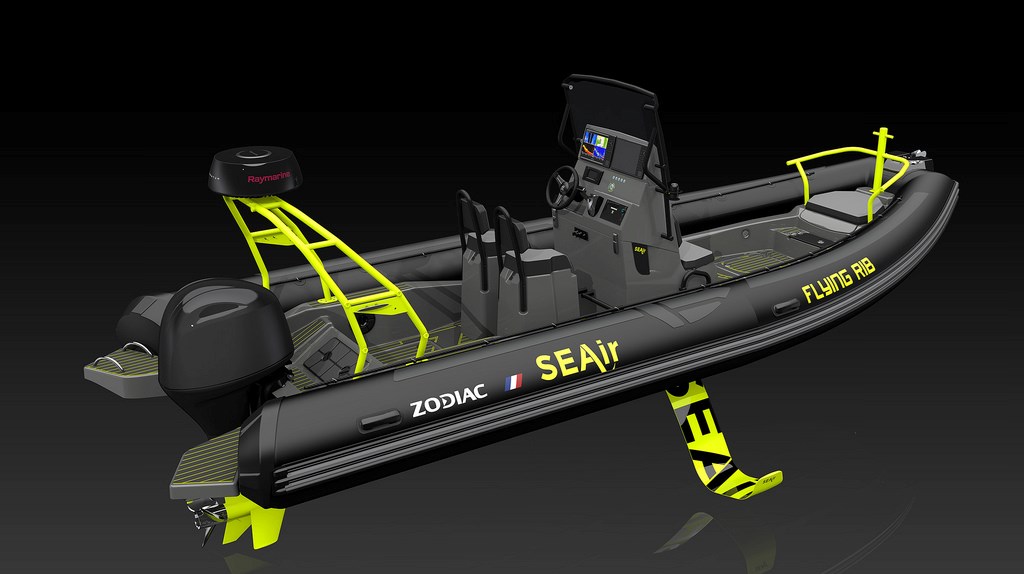 De SeAir is eigenlijk een aangepaste Zodiac PRO RIB van zeven meter. Deze degelijk gebouwde RIB heeft vijf 57,5 cm dikke hypalon tubes om een goede allround romp, waarmee je net zo makkelijk op vlak als op onrustig water vaart. De stuurpositie is goed, al ontbreekt een bank voor de voeten. De Franse club SeAir bouwt, als specialist in draagvleugels, een paar carbon foils in de bodem van de RIB. Ze zijn elektrisch uitschuifbaar en de hoek met het water (de zogenaamde ‘rake’) is eveneens elektrisch te variëren.