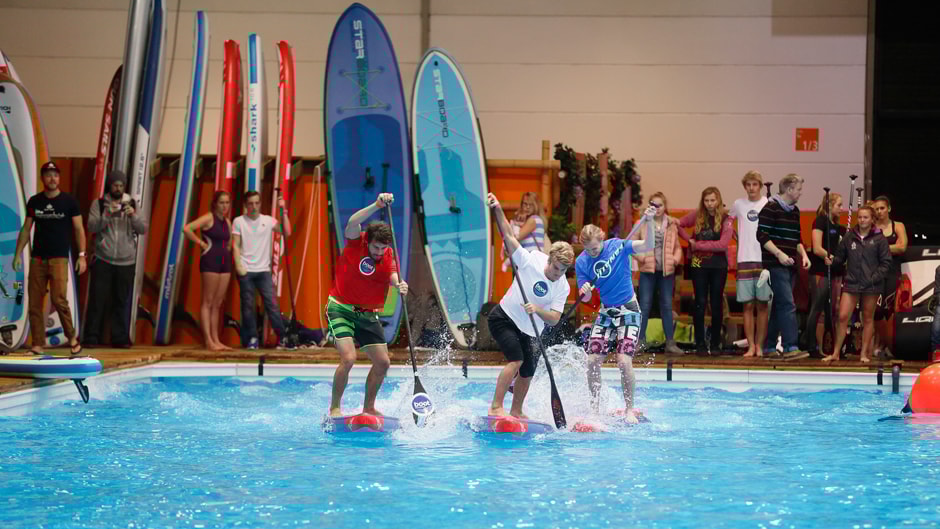 Op het 1.400 vierkante meter grote waterbekken is er doorlopend actie. Dagelijks tonen de wakeboardprofessionals van het Liquid Force Team in samenwerking met Wasserski Langenfeld coole jumps en moves over schansen. Aansluitend is het de beurt aan de tow-in windsurfers en tijdens het tweede weekend gaat het om de roem en de eer bij de foiling-contest. Tussendoor kan men zelf natuurlijk ook op het water in actie komen. Meld je eenvoudig bij het waterbekken aan om te wakeboarden of nieuwe SUP’s te testen. Je krijgt dan ter plekke alle verdere details te horen. Het enige dat je hoeft te toen is een handdoek en badkleding mee te nemen. De wetsuits hebben wij voor je. Als perfecte voorbereiding voor het seizoen bieden wij ook dit jaar een SUP yoga-sessie en een winter-fitnessprogramma aan. Onder vakkundige begeleiding kan je je hier flink uitleven maar ook de innerlijke balans vinden, zodat je bij aanvang van het nieuwe seizoen meteen goed van start kunt gaan.