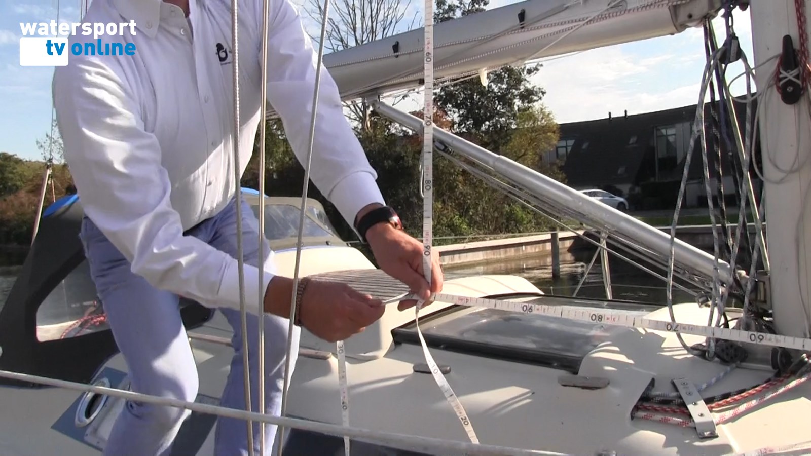 Als je weet wat voor zeil je wilt aanschaffen, dan is het tijd om alle maten die de zeilvoering bepalen op te meten. Dat is een klusje voor de zeilmaker. Met zijn collega Ruben laat Johan aan boord van een Dehler zien wat allemaal wordt gemeten