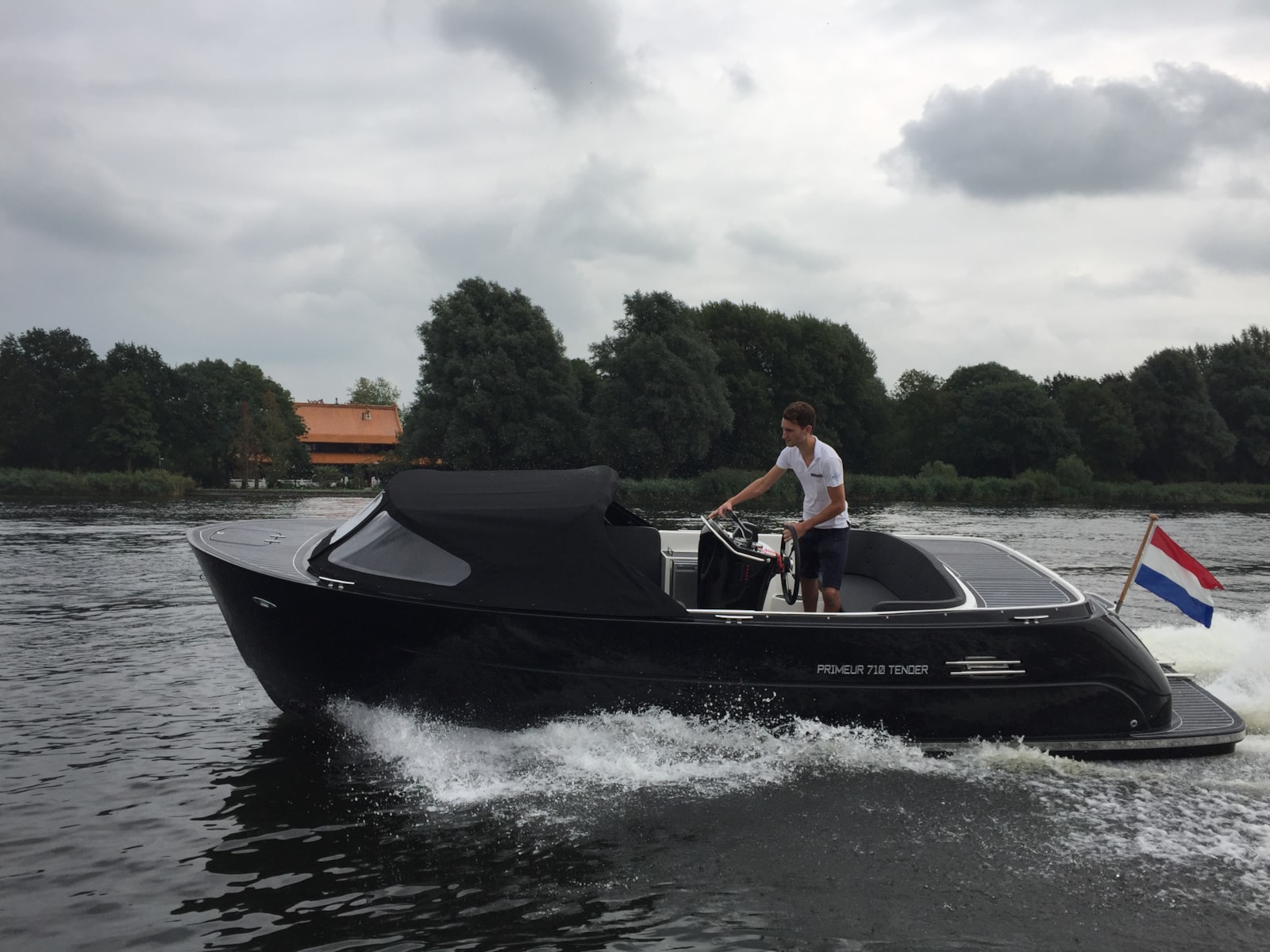 ALPHEN AAN DEN RIJN- Tenders met een buitenboordmotor in een bun zijn trendy. Deels omdat ze goedkoper zijn dan de boten met een inboard diesel, maar ook omdat je er met veel man aan boord, speels plezier mee kunt maken. In samenwerking met De Telegraaf VRIJ testte Watersport-TV de Primeur 710 met 100pk onder het achterdek.