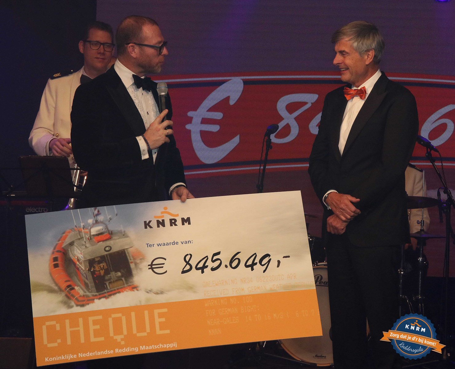 NOORDWIJK- Het jaarlijkse KNRM-benefietgala, waar ruim 500 gasten aanschoven in Grand Hotel Huis ter Duin in Noordwijk, heeft een totaaldonatie van € 845.649 opgeleverd.