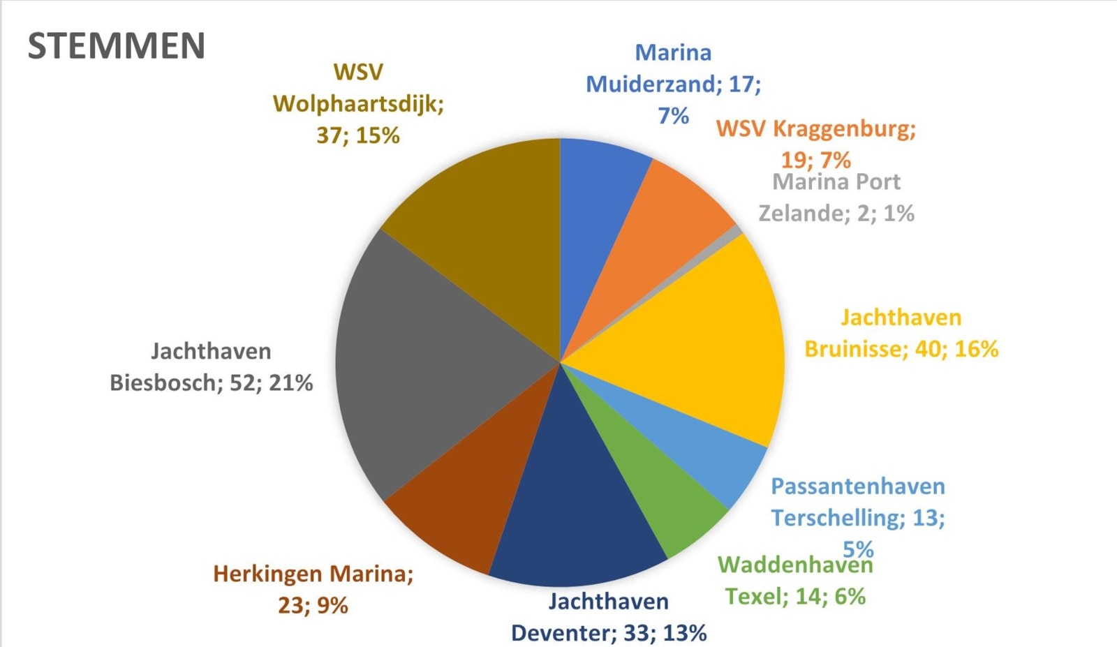 Vanmiddag om 15.00 uur werd de stembus gesloten en werden de stemmen geteld!Met 21% van de stemmen is Jachthaven Biesbosch de winnaar van 2018! De 2e plaats, met 16% van de stemmen is voor Jachthaven Bruinisse en de 3e plaats met 15 % van de stemmen gaat naar WSV Wolphaartsdijk. Voor de winnende havens wordt een juryrapport opgesteld. De winnaar ontvangt de Award en een Winnaarsvlag. Ook de jachthavens van de 2e en 3e plaats ontvangen een prijs.