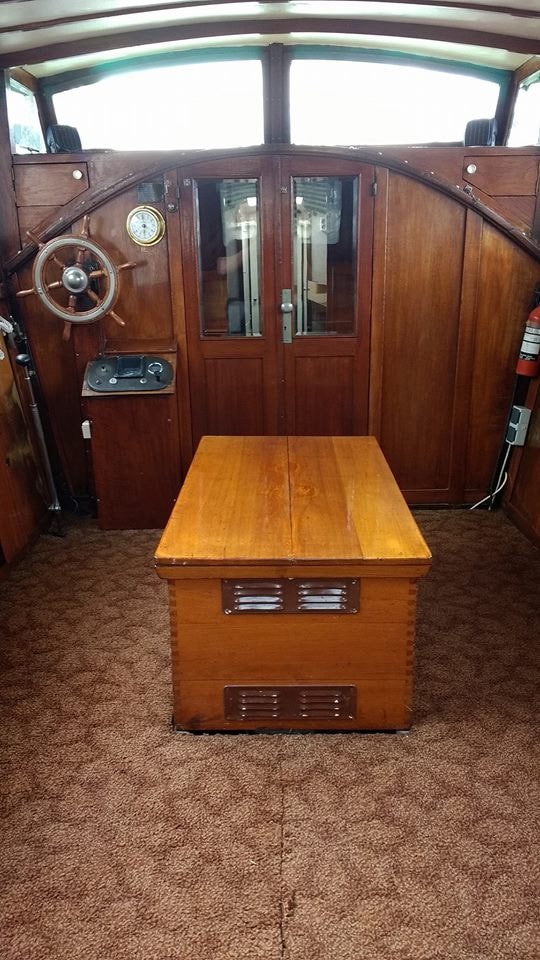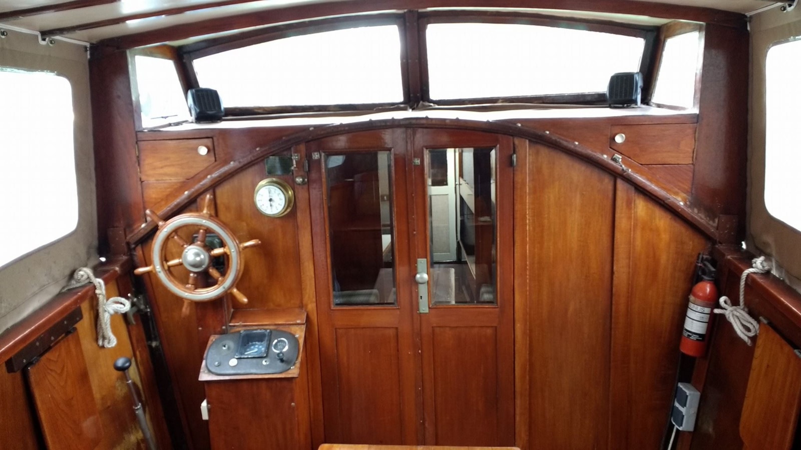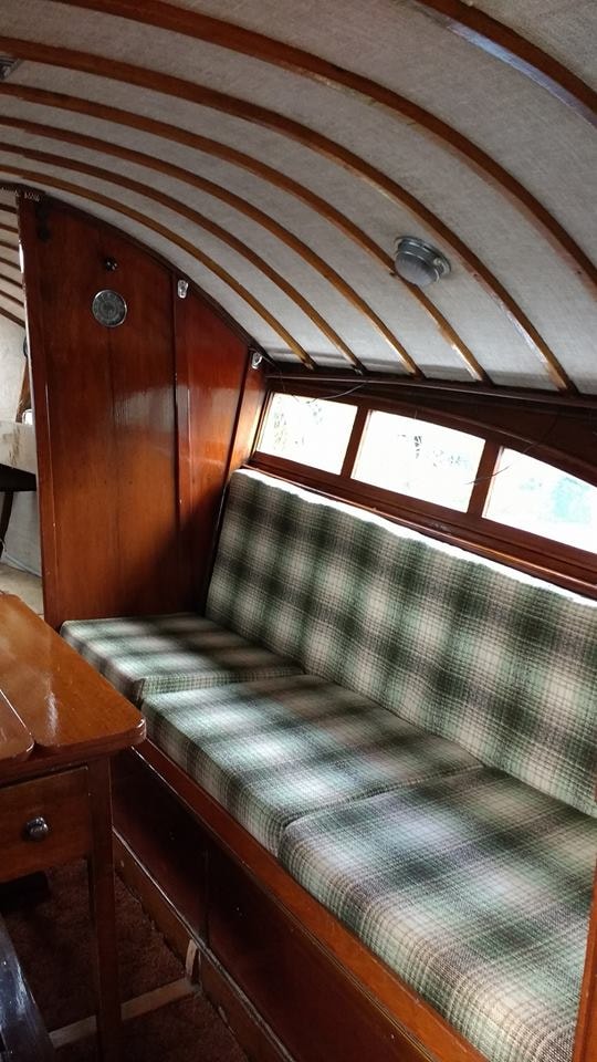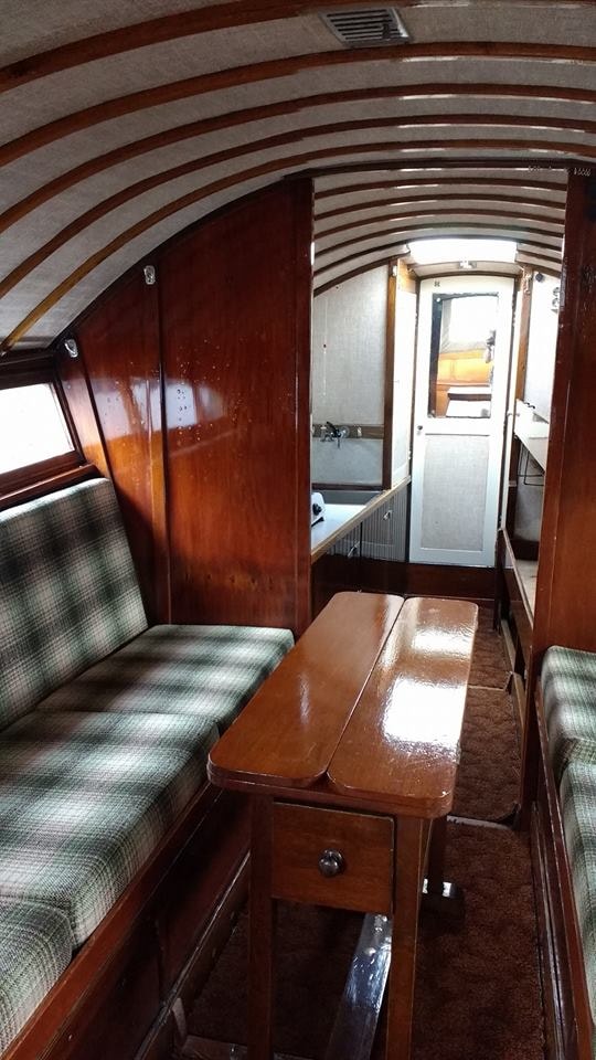 De indeling is nagenoeg origineel. Onder het karakteristieke bolle voordek bevindt zich, in de voorpiek, het toilet. Vervolgens 2 ruime kasten en de keuken met een voormalig stapelbedje. Aansluitend het zitgedeelte, dat gemakkelijk veranderd kan worden in slaapgelegenheid.