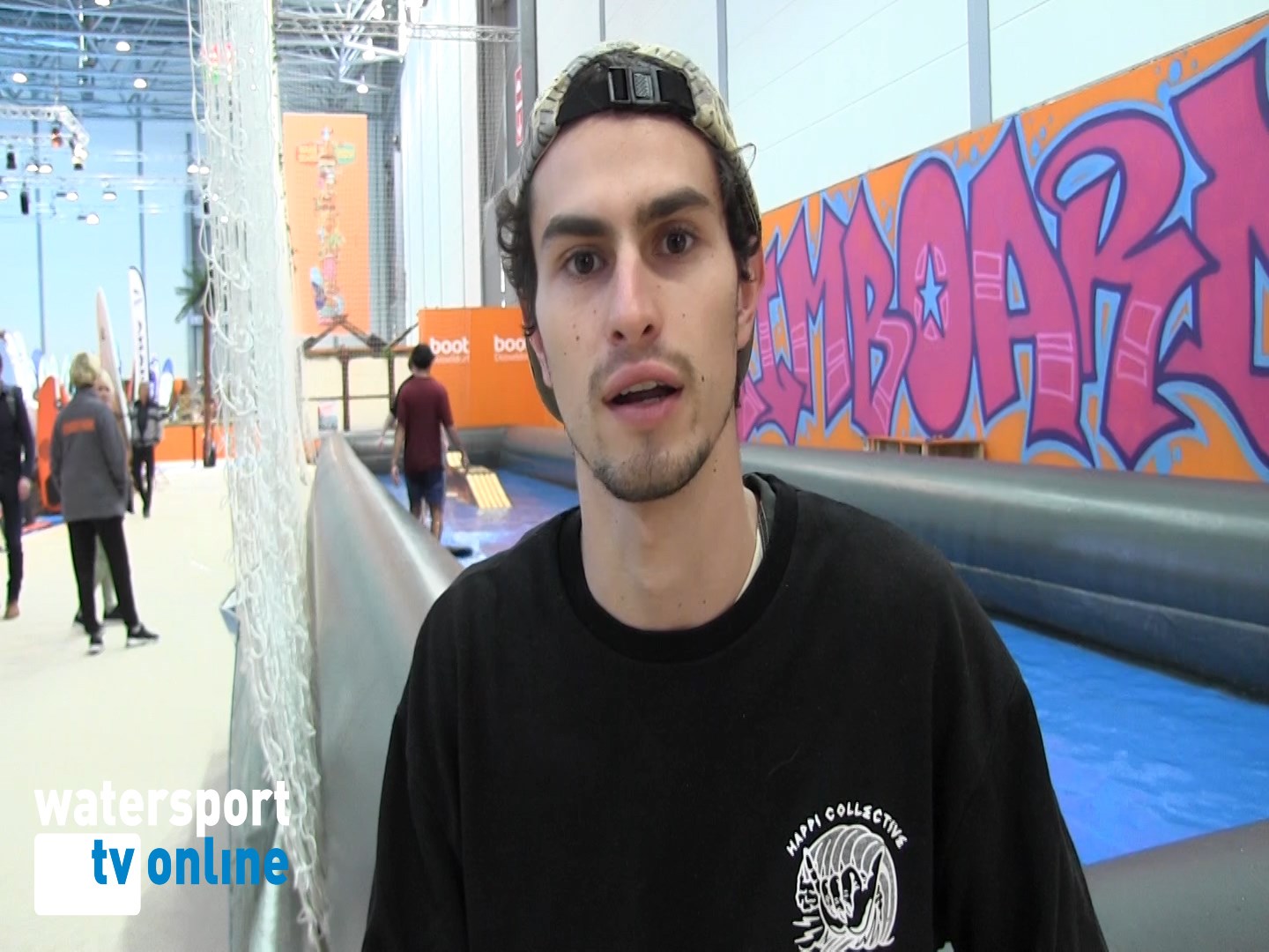 DUSSELDORF-Een nog jonge (water)sport is het skimboarden. Populair bij sportieve jongeren, zoals Max van Leeuwen. Watersport-TV sprak Max op Boot Dusseldorf waar komend weekeinde de eerste wedstrijd is van de European Tour, een selectiereeks voor het Europees kampioenschap.
