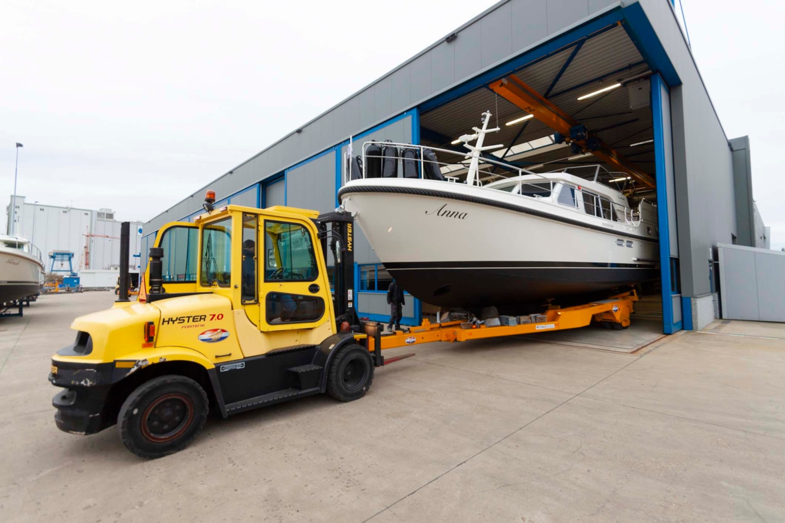 Na de staalbouw en conservering schuiven de in aanbouw zijnde jachten door middel van een ingenieus rail & cradle-systeem, met cycli (takttijden) van een bepaald aantal dagen, door de productiehal naar het volgende bouwstation. Simpel gezegd: de specifieke vakdiscipline gaat niet naar de boot, maar de boot komt naar die discipline.