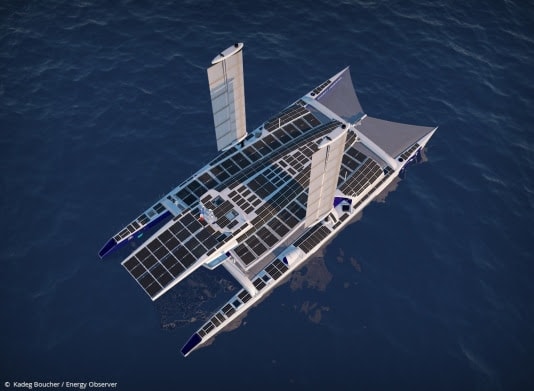 De Energy Observer is het eerste waterstofschip dat rond de wereld vaart en dat streeft naar energieautonomie. Dit elektrisch aangedreven schip van de toekomst functioneert zonder uitstoot van broeikasgassen of fijnstof dankzij een mix van hernieuwbare energie en een systeem voor de productie van koolstofvrije waterstof uit zeewater. Deze technologische en wetenschappelijke uitdaging heeft als doelstelling om geavanceerde technologieën te testen onder extreme omstandigheden, als voorloper op toekomstige energienetwerken, toepasbaar op land.