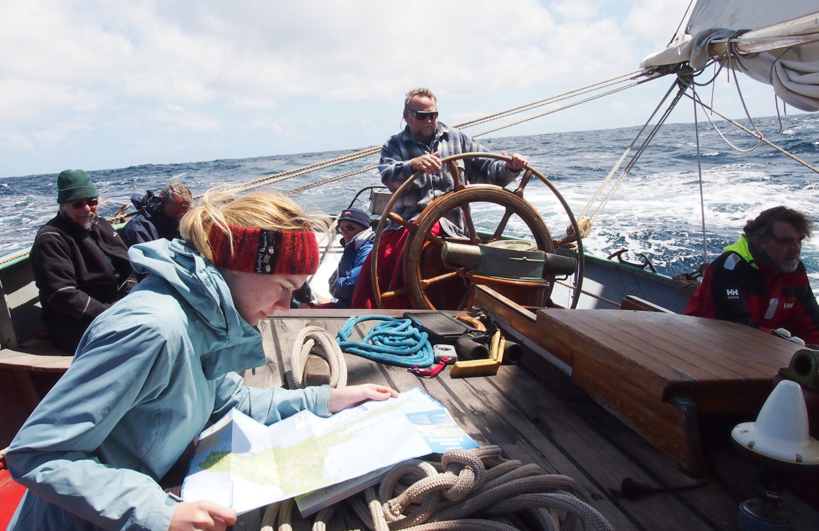 “De vrijheid van het op zee zijn, de vrijheid om te leren, om te ontdekken wie je zelf bent. Zodra je wegvaart en het bereik van je telefoon weg is, doe je het met elkaar. Tijd om te leren, persoonlijke ontwikkeling, maar ook vaardigheden. Je doet ontzettend veel voor het eerst. Het is een heel proces. Mega leerzaam en inspirerend. Ik ga weer glimmen als ik terugdenk aan mijn eerste reis. Wat zoveel meer was dan alleen een vakantie.”