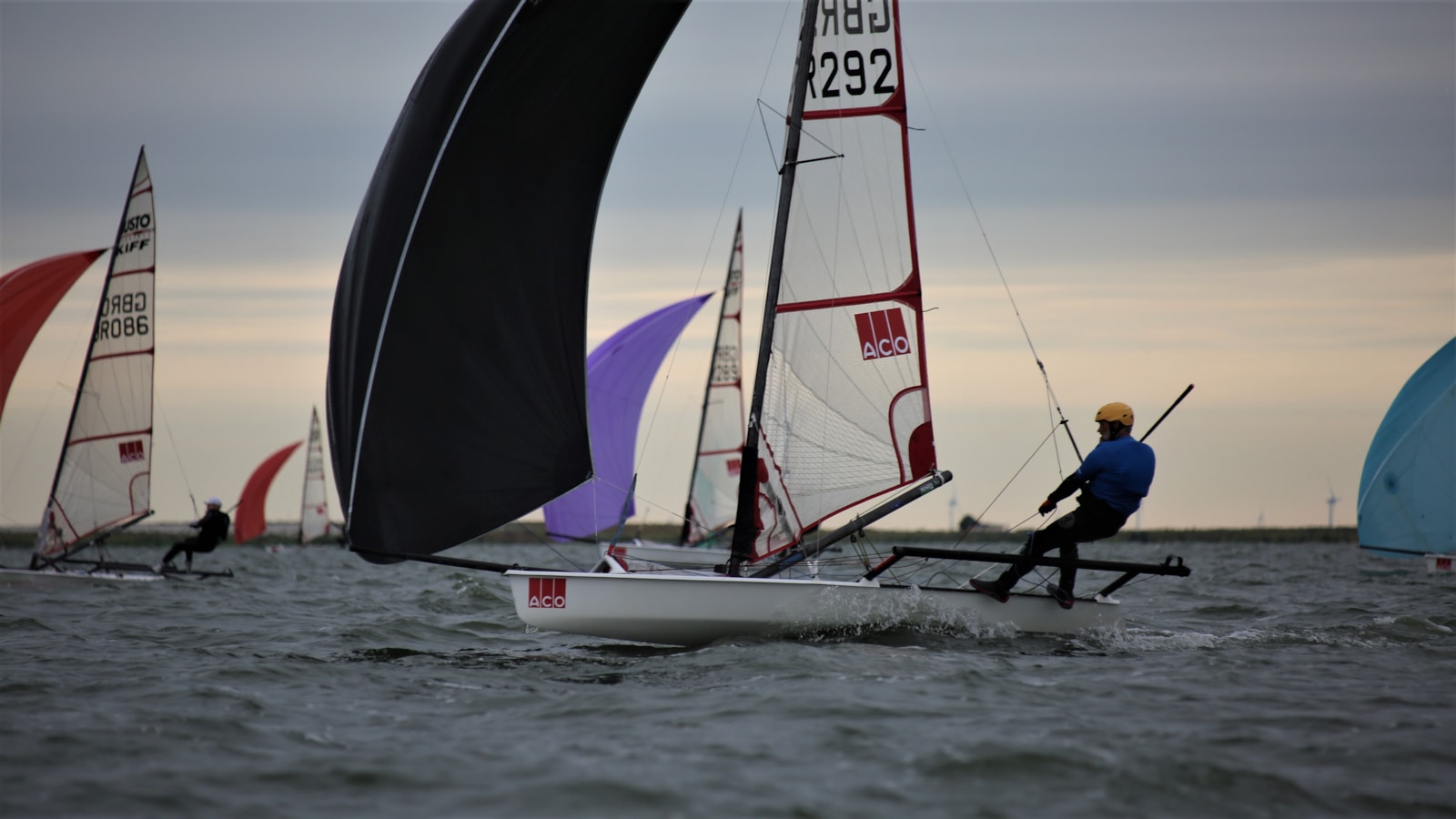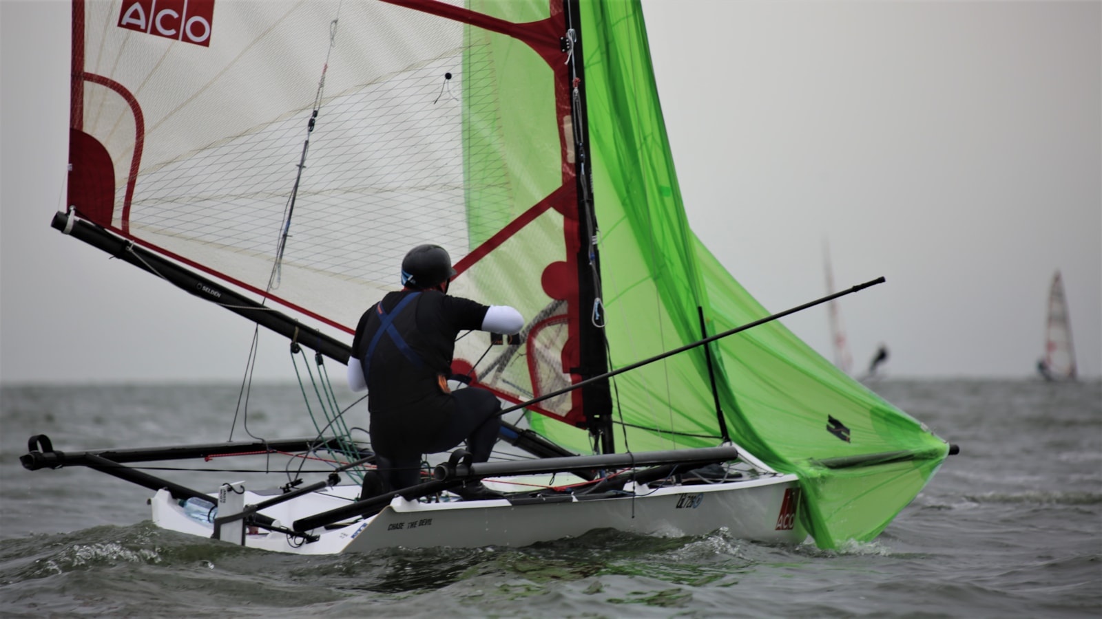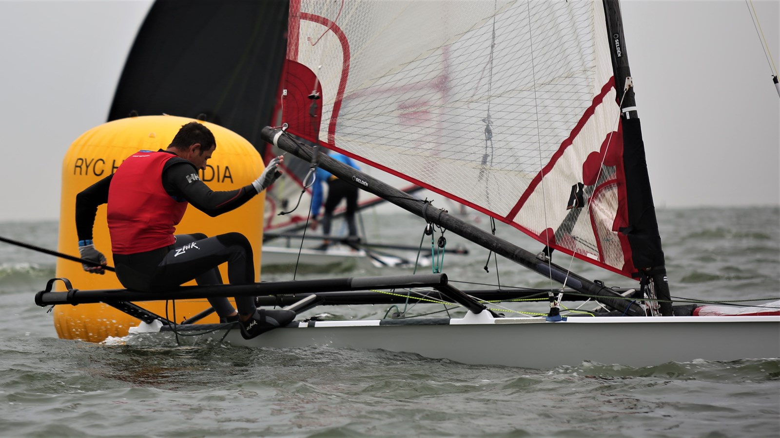 MEDEMBLIK- Na de derde dag van het ACO 10th MUSTO Skiff World Championship 2019 gaat Rick Peacock (GBR) dik aan kop in het voorlopige totaalklassement. De Engelsman, talentcoach van het Nederlandse High Performance project van het Watersportverbond, sloeg een gat van negen punten met landgenoot George Hand.