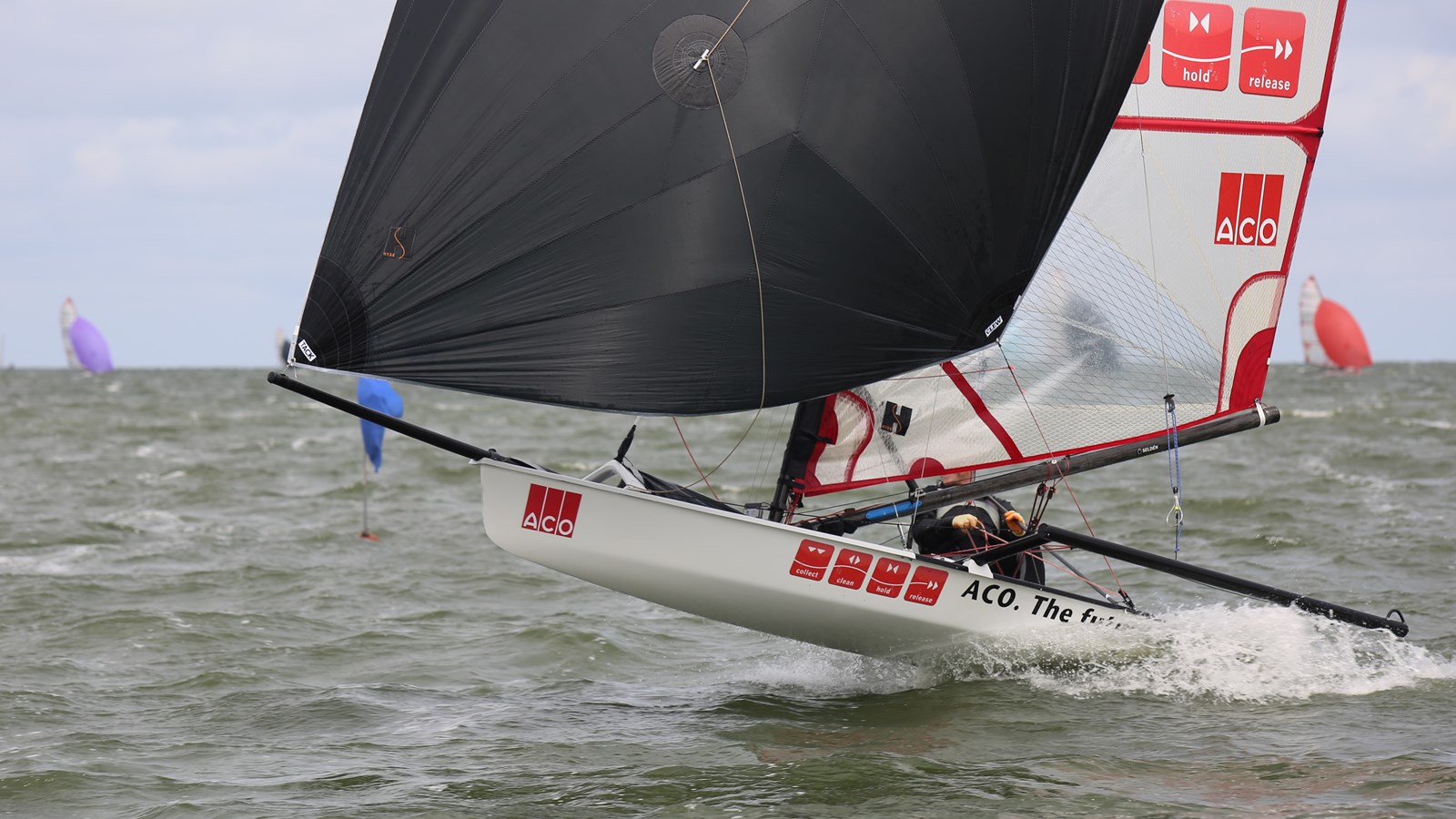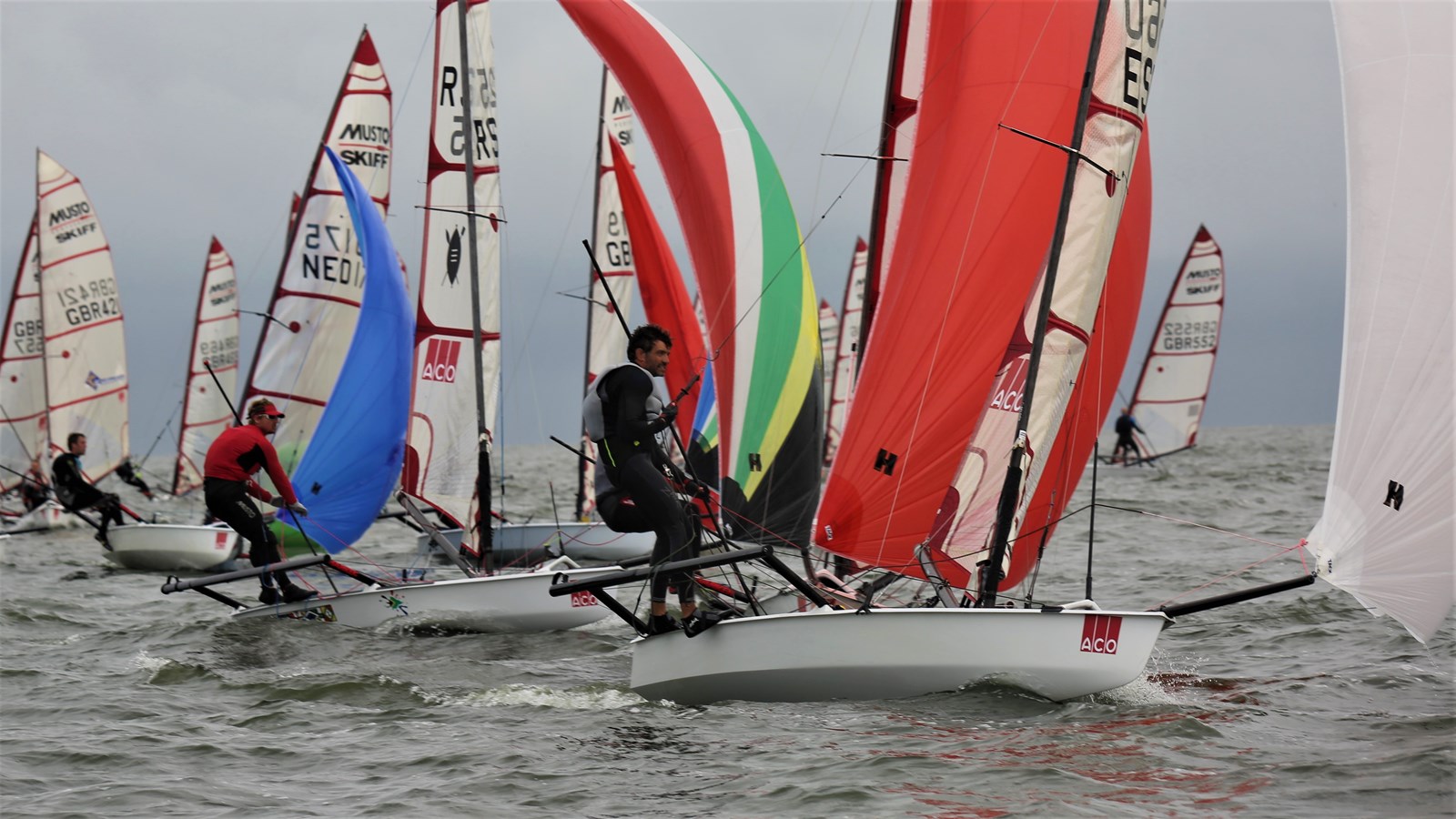 MEDEMBLIK- Bruce Keen (GBR) hield zaterdag het hoofd koel in een zenuwslopende strijd om het ACO 10e MUSTO Skiff Wereldkampioenschap 2019. Het kwam neer op de allerlaatste meters voor de finishlijn van de slotwedstrijd. Hij liet op het nippertje titelverdediger Jon Newman (AUS) achter zich, die de zilveren medaille mee naar huis neemt. Door de laatste race te winnen, verzekerde George Hand (GBR) zich van de derde podiumplaats.