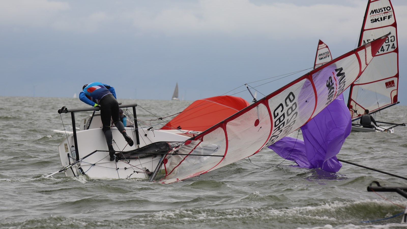 Pim van Vugt daarentegen zakte juist van de achtste naar de twaalfde plaats. Hij hield naar eigen zeggen geen goed gevoel over aan dit einde van zijn eerste wereldkampioenschap in de MUSTO Skiff. “In de eerste race was helemaal geen wind en ik ging toch nog om in de overstag. Dat was niet fijn. Daarna kwam er nog iets van mijn schoot uit het dek zetten. Dat hielp ook niet. Het ging niet lekker, maar dat heb je soms.” Ondanks dit eindigt de 49er-zeiler uit het High Performance Project van het Watersportverbond op eenzame hoogte in het klassement van onder 25-jarigen.