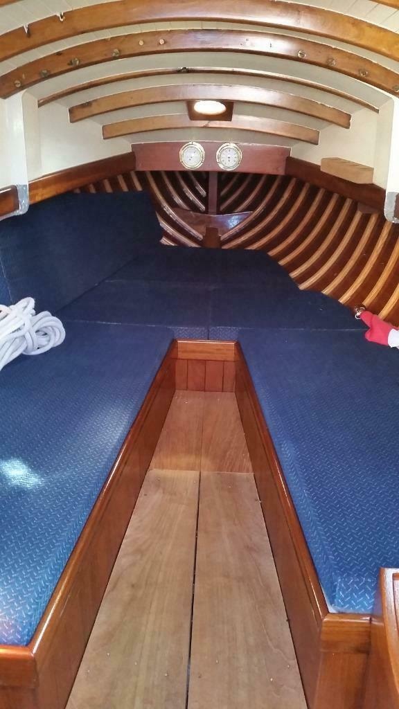 teakhouten zeiljachtje. lengte 7.20 meter, breedte 1.75 meter