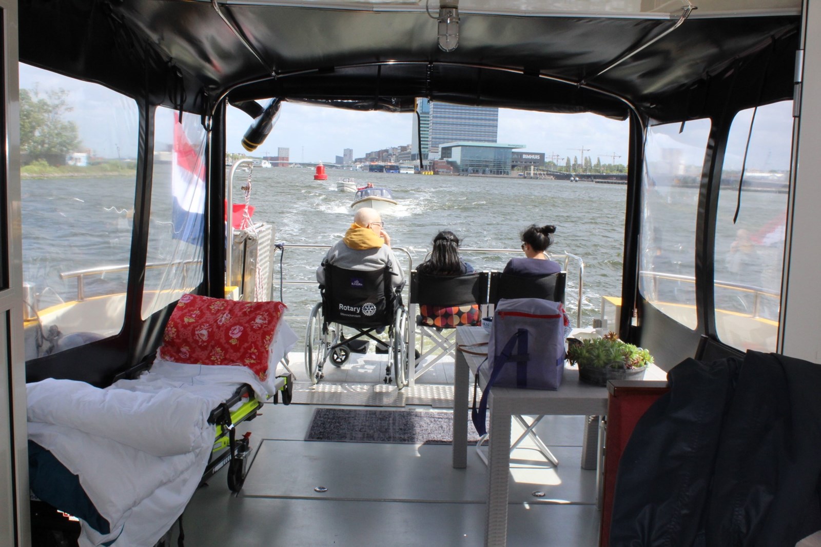 Dan komt er een aanvraag binnen, waarbij door de hele intake heen een hartenkreet schreeuwt en we worden diep geraakt. “Zal ik toch eens bij de autoriteiten informeren wat we mogen en kunnen Evert?”, zucht Inge. “We kunnen ze moeilijk een voucher geven, want deze mensen kunnen niet wachten tot deze toestand voorbij is. Dan zijn ze er al niet meer!” en ze boort ogenblikkelijk alle bronnen aan waarvan ze vermoedt medewerking en toestemming te kunnen krijgen. Ik zal hier het lange traject niet beschrijven, maar ze heeft alle autoriteiten op nautisch gebied in Amsterdam kunnen overtuigen van haar veilige vaarplan en niet onbelangrijk, ze vindt ook een aantal vrijwilligers bereid om ingezet te worden.