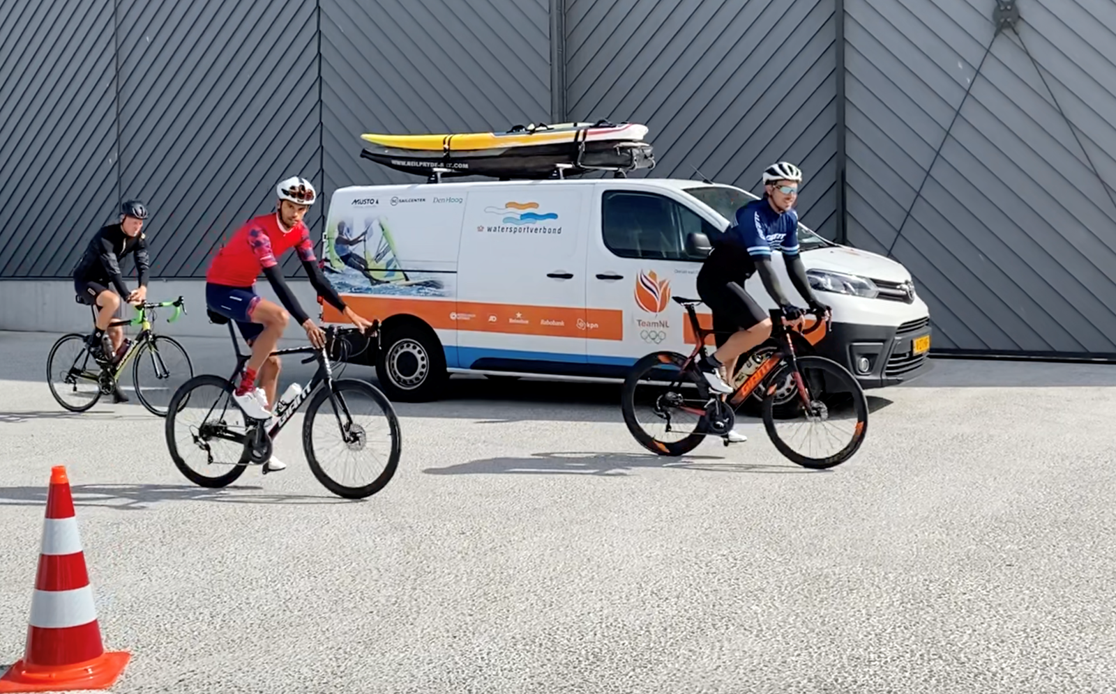 SCHEVENINGEN- De wereldkampioenen in de Olympische RS:X windsurf klasse: Lilian de Geus en Kiran Badloe zijn dinsdag begonnen aan hun trainingskamp in eigen land. Beide windsurfers fietsten, samen met Finn-zeiler Nicholas Heiner ook afkomstig uit de TeamNL zeilen kernploeg en de windsurfers uit de jeugdacademie ploeg van het Watersportverbond, de eerste 120 KM van Scheveningen naar Medemblik.
