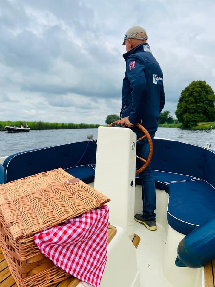 AMERSFOORT- Alles zat vrijdag mee tijdens de tweede opnamedag voor de nieuwe Watersport-TV serie ’Holland Vaart.’ Met een boot van sloepverhuur aan het roer voeren we over de rivier de Eem naar de stad. Onderweg had Marjan Stoker (Chez Nous) voor een rijkelijk gevulde lunchmand gezorgd.