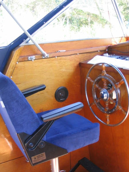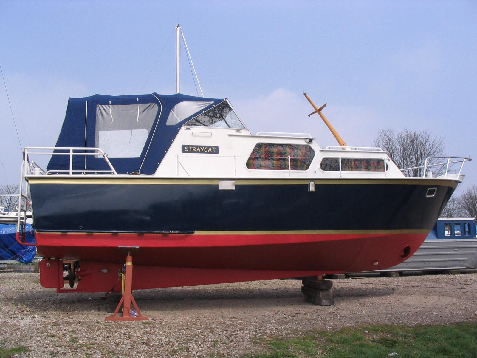 De eigenaren van de Straycat hebben hun motorboot aan de watersportsteiger afgemeerd. De boot is te koop.