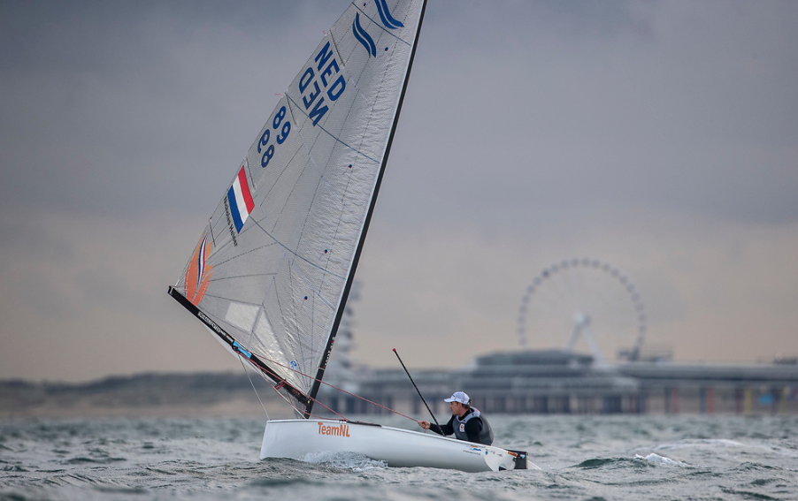 “Op zondag hebben we voor het eerst gevaren hier. Maandag 31 augustus doen we dat nog een keer. Dinsdag hebben we een rustdag en dan starten we woensdag. We zijn hier heel laat aangekomen, dat zat in ons originele plan. Ik kreeg al vragen van de andere Finn zeilers of we wel kwamen. We hebben ze een beetje gedold en onduidelijk gedaan, wat grappen en grollen over en weer. Maar in ons programma wilden we zoveel mogelijk uren maken in Scheveningen in voorbereiding op het WK in Palma de Mallorca in oktober. Maar dat WK is vorige week afgelast en we wilden ons programma niet nog een keer omgooien.”