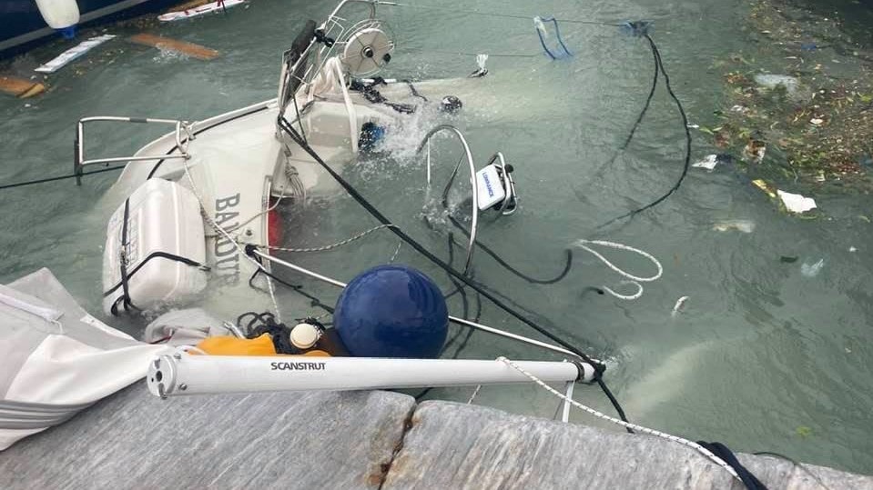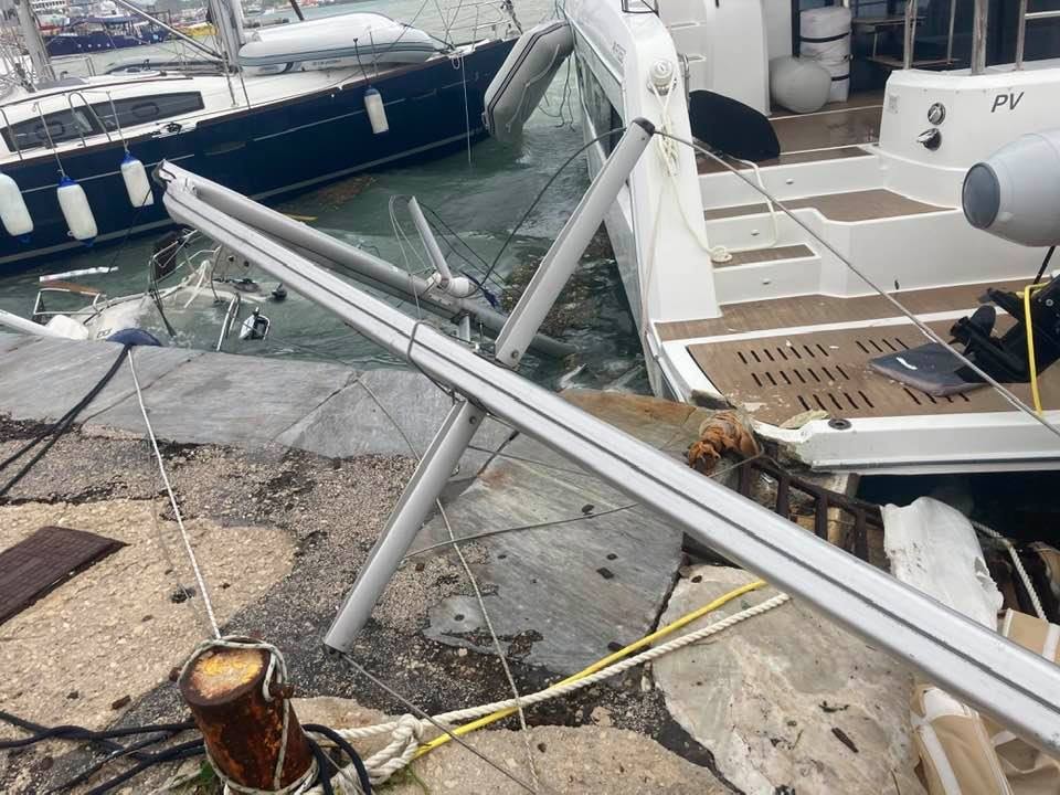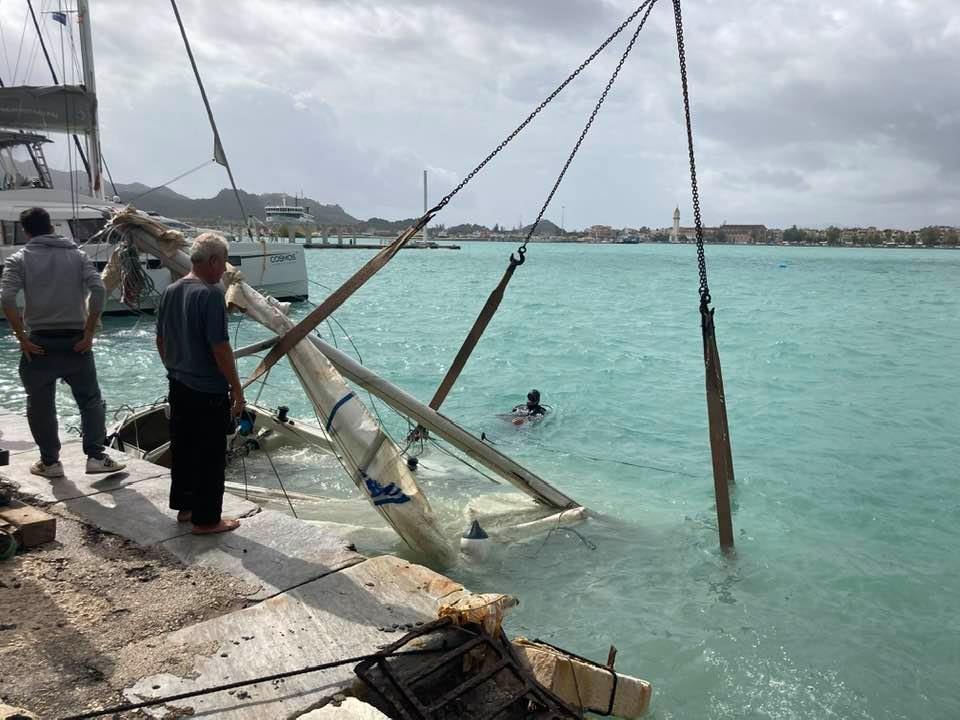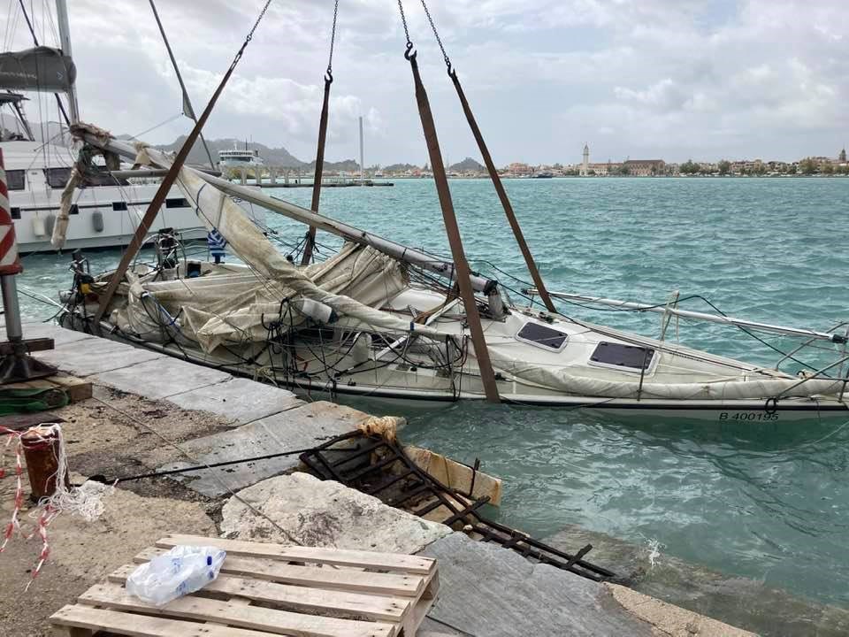 ZAKYNTHOS- ’’Zo komt ze boven water, zwaar verminkt, haar ingewanden al stinkend door verrotting, slijk en diesel. Zelfs de mooie buik van mijn lieveling die ik verwende wanneer ze ’s-winters op de kade stond en die ik liefdevol streelde nu verscheurd door harde rotsen die geen medelijden kennen,’’ aldus Dirk Cannaerts. Ruim een week geleden maakte een orkaan die over het Griekse Zakynthos trok een einde aan het zeilplezier van de Belgische zeiler. De Dehler 38 sloeg te pletter op de kade van de haven. De afgelopen week moest Dirk gelaten in zijn hotelkamer afwachten wanneer zijn schip geborgen zou worden. Dat is nu gebeurd. De foto’s laten het zwaar gehavende wrak zien. Beelden waar zeilliefhebbers stil van zullen worden.