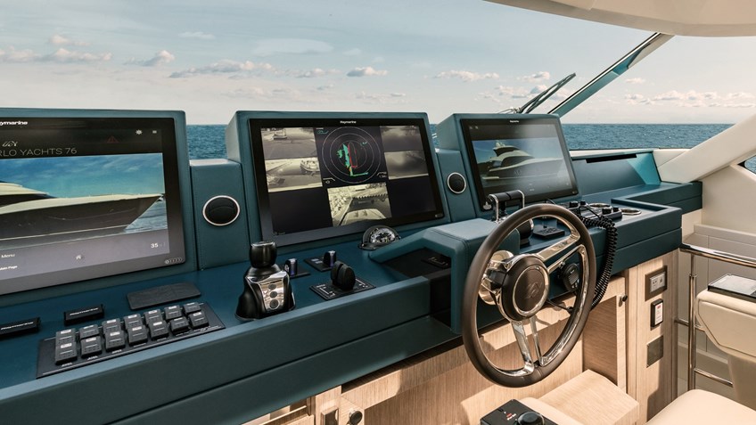 Op verzoek van de opdrachtgever werkte Raymarine nauw samen met de ontwerpers van Monte Carlo Yachts aan een DockSense Alert-oplossing met vijf camera’s die de schipper van de MCY 76 Skylounge voorziet van een ongekend omgevingsbewustzijn. DockSense Alert is volledig geïntegreerd in het Raymarine Axiom XL-systeem van de MCY 76 Skylounge en verbetert het perspectief van de schipper bij het aanleggen en het algehele zicht rond het jacht. Ook geeft DockSense Alert slimme geluidssignalen en visuele meldingen af om de schipper te informeren als een object zich dicht bij het jacht bevindt, waardoor het aanleggen aanzienlijk vereenvoudigd wordt.