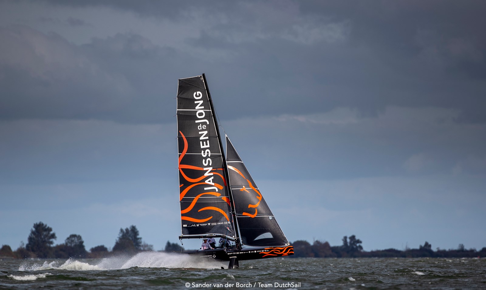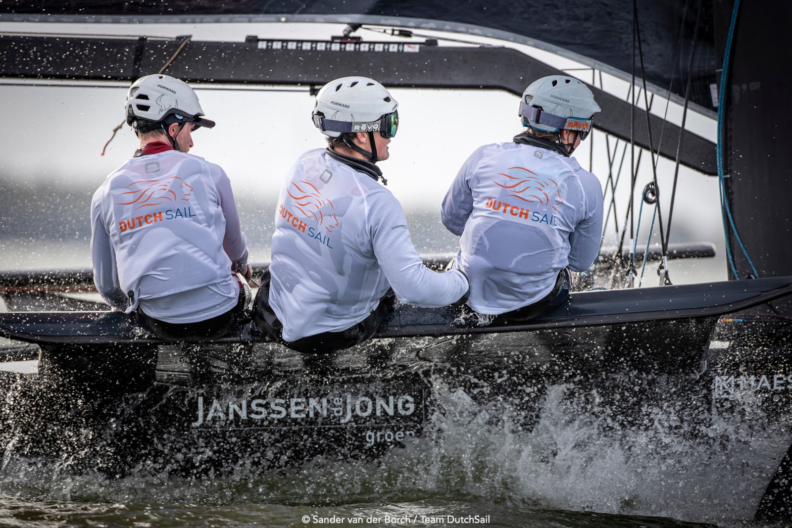 Zeiler Lars van Stekelenborg: “We hebben het beest (de 69F red.) in Muiden echt beter leren kennen. We hebben mooie trainingsuren kunnen maken onder meestal goede omstandigheden. De nadruk lag op de snelheid, de stabiliteit en de acceleratie: het zo snel mogelijk op de foil en dus uit het water komen. Daar hebben we echt goede stappen in gezet.”