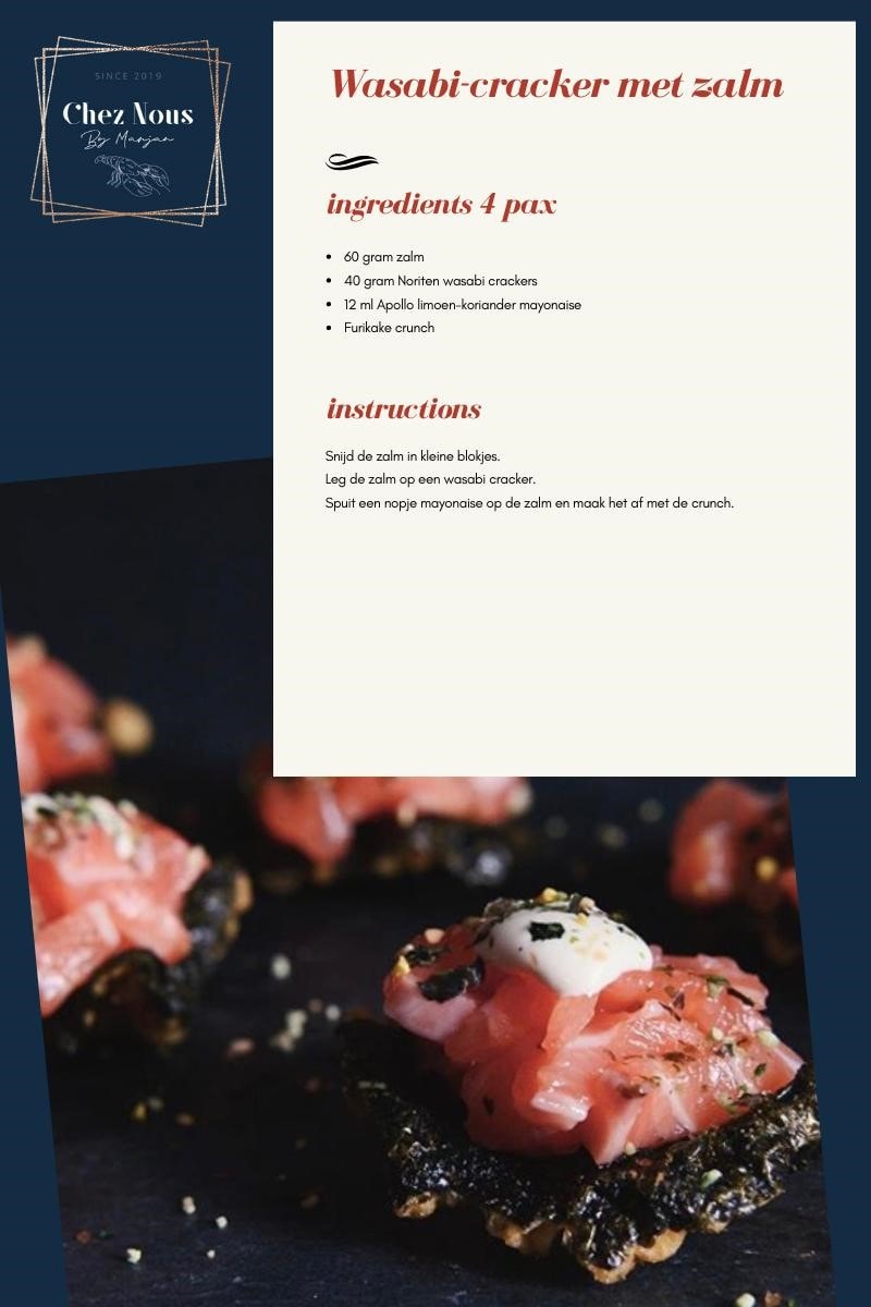 In iedere aflevering van ’Holland Vaart’ maakt Marjan Stoker (Chez Nous by Marjan) een of meerdere gerechten die eenvoudig aan boord te bereiden zijn. Ditmaal heeft ze hapje voor bij de borrel: een Wasabi cracker met zalm. Klik op foto.
