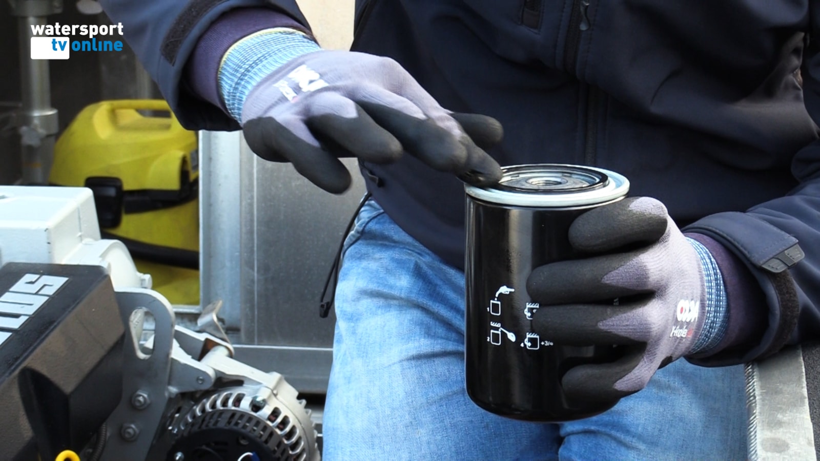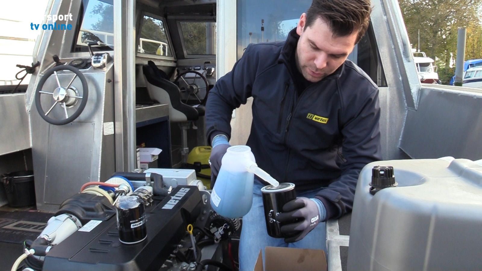 Hij begint met het aftappen van water uit de brandstof-en waterafscheider. Vervangt de olie-en brandstoffilters. Daarna tapt hij condensvocht van de oplaadluchtkoeler af. En checkt de transmissie van de keerkoppeling, maar ook de impeller en accu’s. Ten slotte geeft Pim nog enkele tips voor tijdens het vaarseizoen.