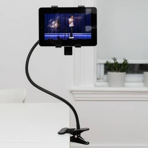 Met de flexibele houder van Kikkerland kun je eenvoudig bijna overal aan boord je tablet plaatsen. De tablethouder heeft een flexibele stang, die je zo kunt draaien dat je altijd de beste kijkhoek hebt. De tablethouder klem je vast aan een oppervlak van maximaal drie centimeter dik. Je kunt deze tablethouder gebruiken voor tablets tussen de 5.1 inch (13 cm) en 8 inch (20 centimeter) breed.