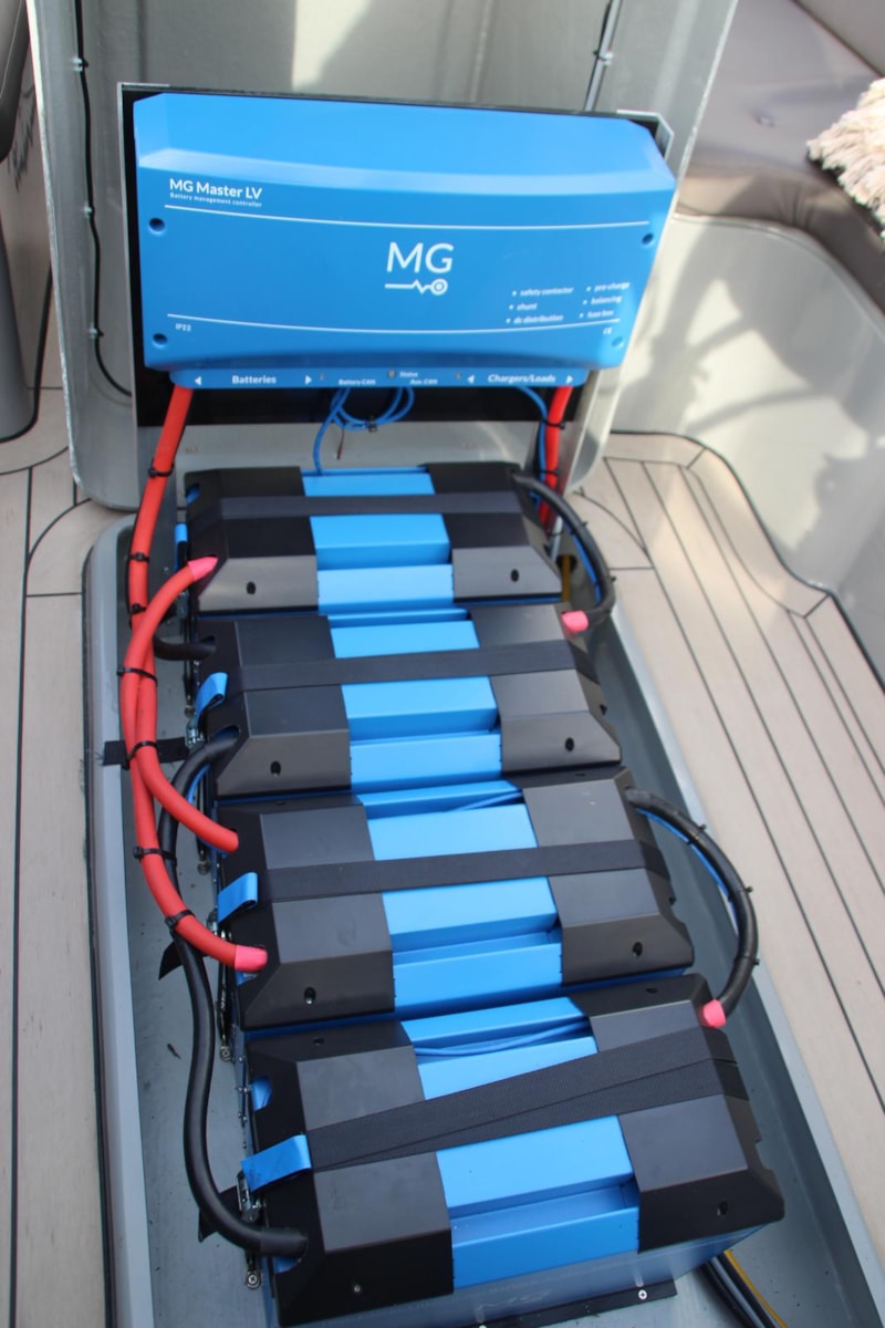 De sloep van Robert heeft een door Stil Propulsion ontwikkelde Duplex rvs 8kW Stilpod 80 motor en 15 kW aan lithium-ion accu’s. De keuze voor lithium accu’s vraagt een hogere investering dan wanneer tractieaccu’s worden aangeschaft. Toch is voor Li-Ion gekozen. Goos: ,,Lithium-ion gaat lang mee, na vijf jaar bespeur je nog geen enkele veroudering. Daardoor zijn ze op de lange termijn net zo duur of misschien wel goedkoper dan conventionele tractieaccu’s. Ander voordeel is dat het accuvolume kleiner is. Wel is belangrijk dat je goed monitort zodat de accu’s niet te weinig of te overlaadt. Dat wordt in ons systeem automatisch en storingsvrij geregeld. We zijn er super trots op dat het zo goed werkt. Ons geheim is dat er niet op kwaliteit is bezuinigd, we gebruiken alleen de allerbeste materialen en onderdelen. Zoals een permanent magneetmotor. Deze heeft onderin meer koppel, dus kun je een grotere schroef toepassen en dat is efficiënter. Verder is de motor zo simpel dat iedereen deze snel kan demonteren of monteren. Het is misschien wel het duurste elektrische aandrijfsysteem van Nederland, maar dit koop je voor het leven.“