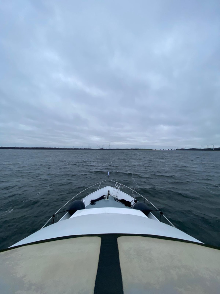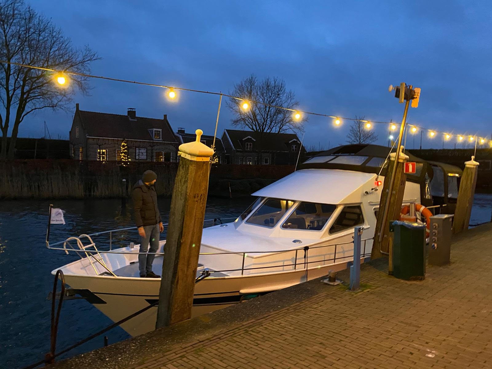 De eerste bestemming was Willemstad, dat veel weg had van een spookstadje. Zo stil was het. Ik had bij de supermarkt pizza gehaald met de bedoeling die in de oven aan boord op te warmen. Maar direct sloegen alle stoppen door. Terug naar de supermarkt om ander eten te halen, maar helaas bleek de Jumbo gesloten. Merijn is in Willemstad van boord gegaan en met mijn hond Chiko heb ik voor het eerst aan boord overnacht. De volgende dag is mijn vader, die zelf ook een boot heeft, aan boord gekomen en zijn we samen naar Dordrecht gevaren. Op het Hollands Diep was het wel behoorlijk koud, het was rond het vriespunt. Vanaf de fly-bridge heb je geweldig zicht en ik had daar echt een King of the world gevoel. Vlak voor de thuishaven hebben we de dieseltanks volgegooid…400 liter brandstof…heb ik voorlopig genoeg en is mijn portemonnee weer leeg. Het aanleggen etc verliep geheel volgens plan,’’ aldus Kees die de komende dagen druk zal zijn met verhuizen. Zijn huis dat hij heeft verkocht moet leeggehaald worden. Vanaf vrijdag is hij bootbewoner.