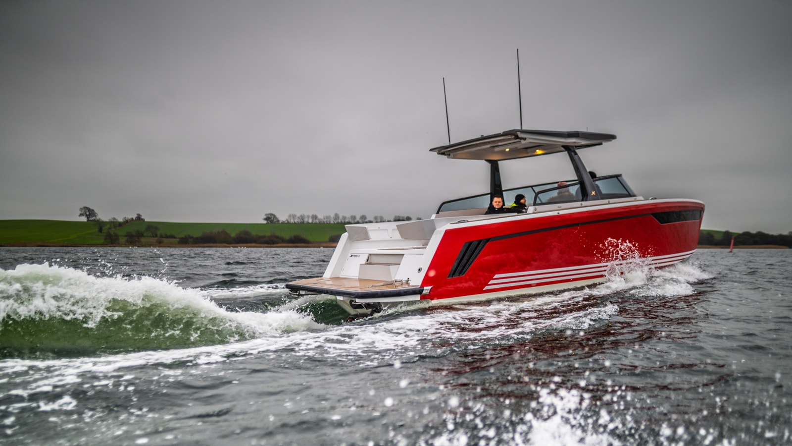 De X-Power 33C is een deckboat met verblijfsaccommodatie voorin. Dat is op deze ruim tien meter lange sportboot ruim voldoende om ook meerdaagse tochten te maken. Met een Yanmar van 320 tot 370 PK liggen verder weg bestemmingen binnen handbereik.